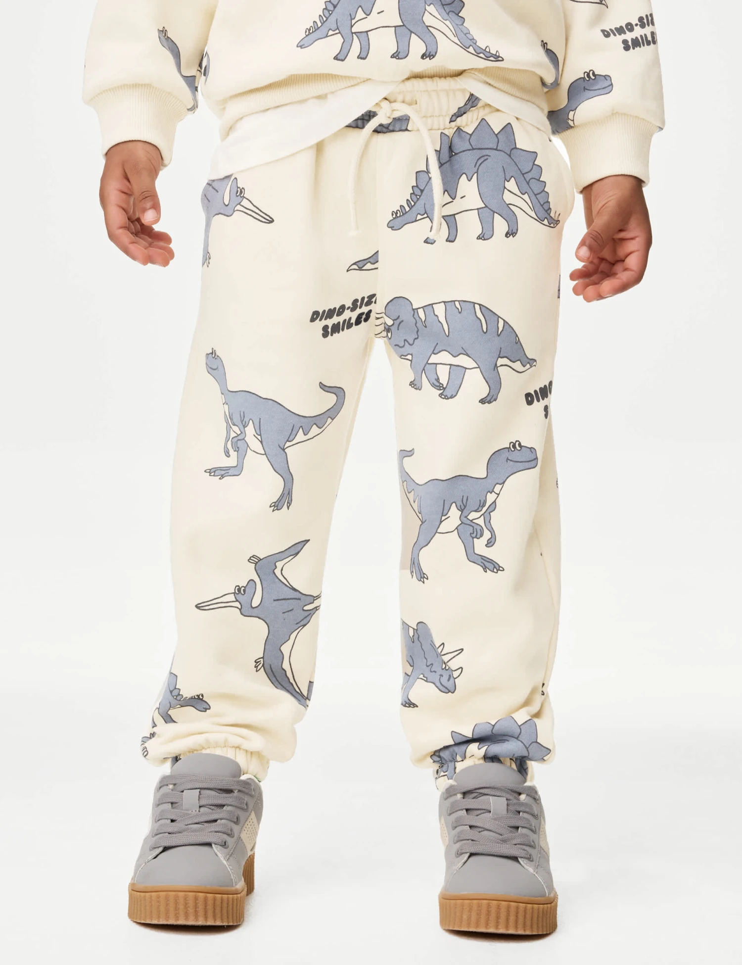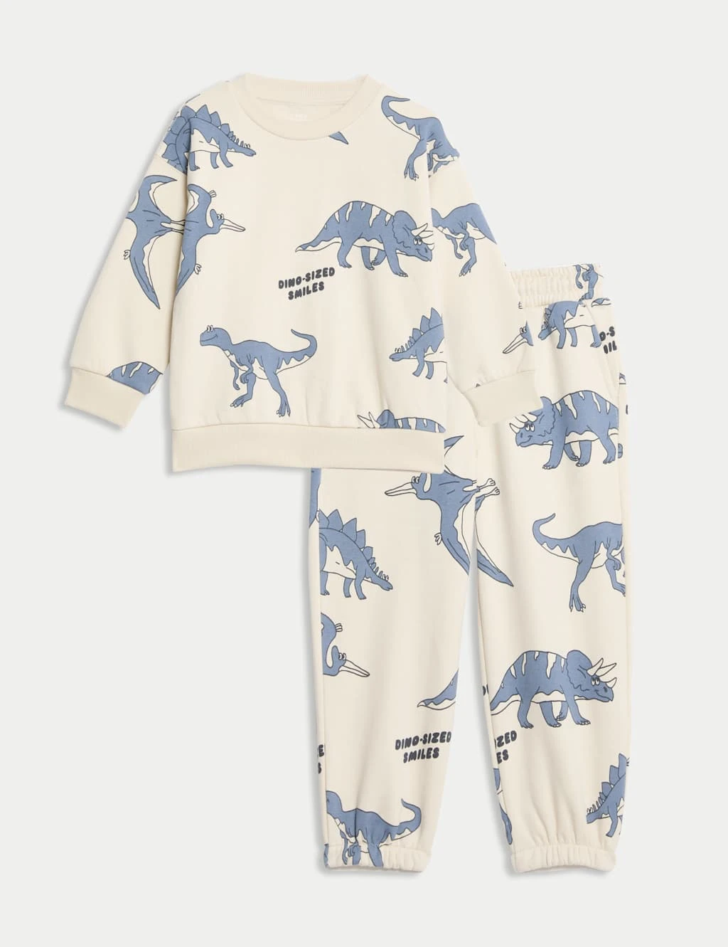 This cotton-rich outfit is perfect for young dinosaur fans. The regular-fit set comprises a long-sleeved top and comfy joggers, both with friendly dinosaur graphics. A drawstring waist ensures a flexible feel.