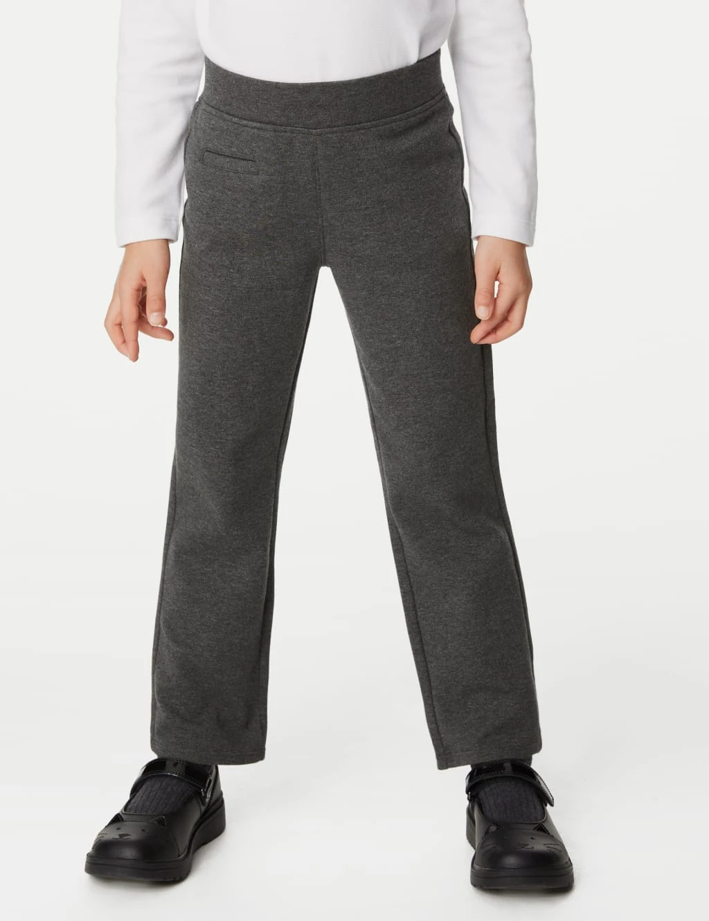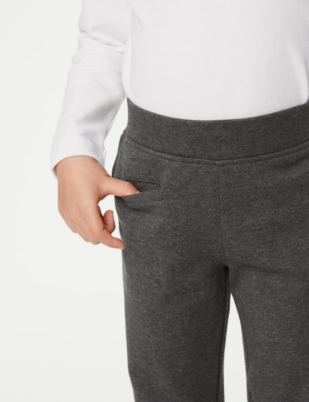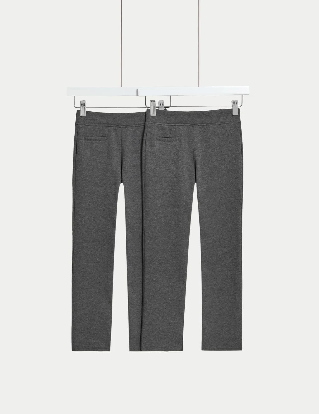 Made from cotton-rich jersey, the trousers in this two-pack will keep them feeling comfy through the school day. They have our classic regular-fit, regular-leg shape, and simply pull on, thanks to the wide stretchy waistband. The little pocket detail on the front adds a smart and useful finishing touch.