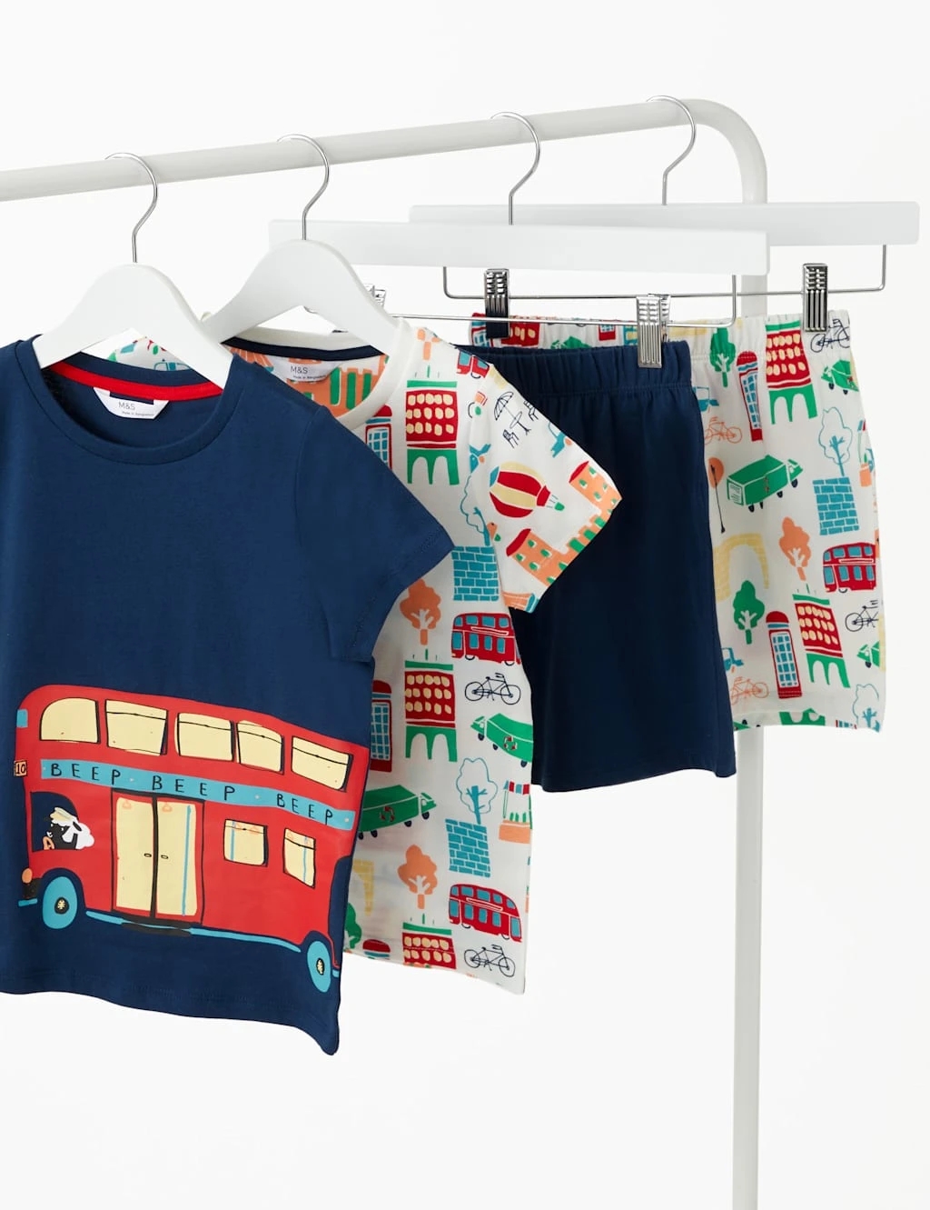 It’s all about transport with this cute pack of pure cotton pyjama sets. Crafted to a regular fit. Each set includes a t-shirt and shorts with an elasticated waist for comfort. Decorated with a mix of vehicle illustrations, including buses and bicycles, to inspire your little one’s dreams.