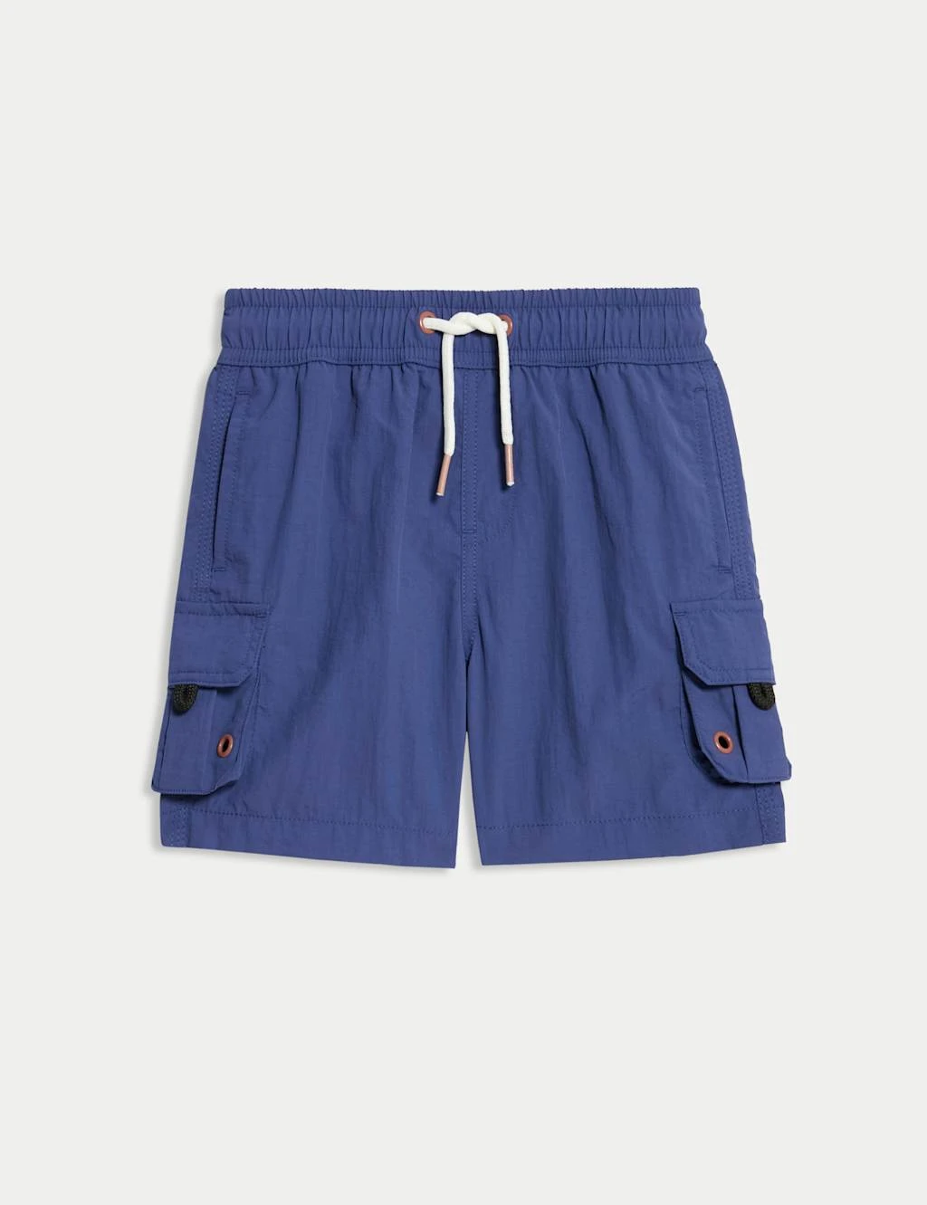 These swim shorts are perfect for their seaside adventures. Regular fit, with a comfy elasticated waist and an adjustable drawstring fastening. Side pockets and two cargo-style flap pockets on the legs provide practical space for their essentials.