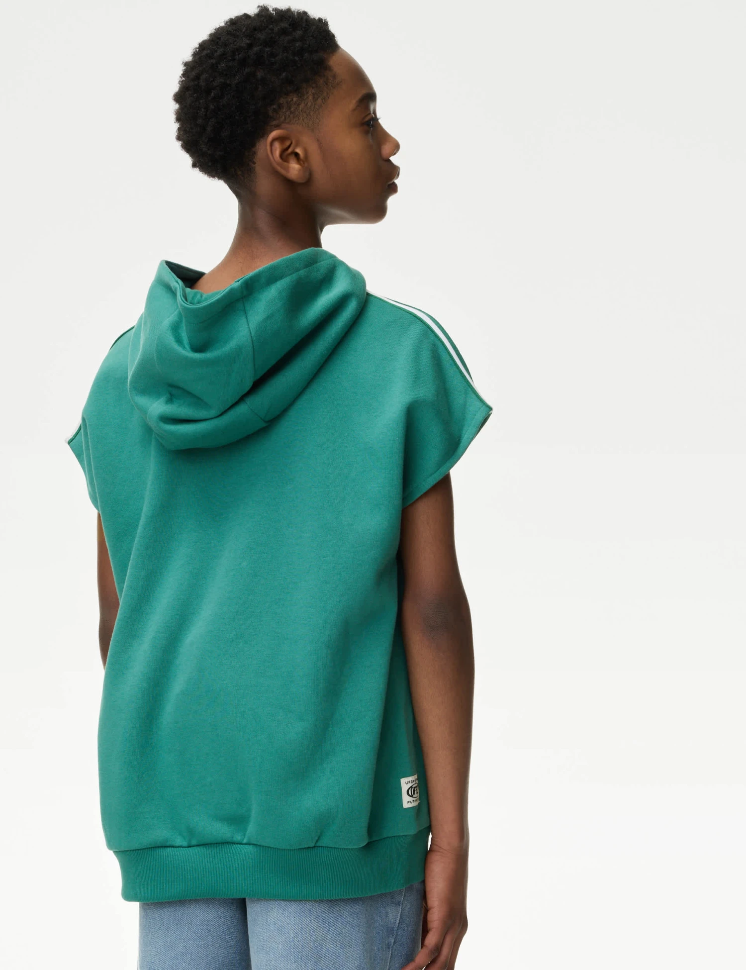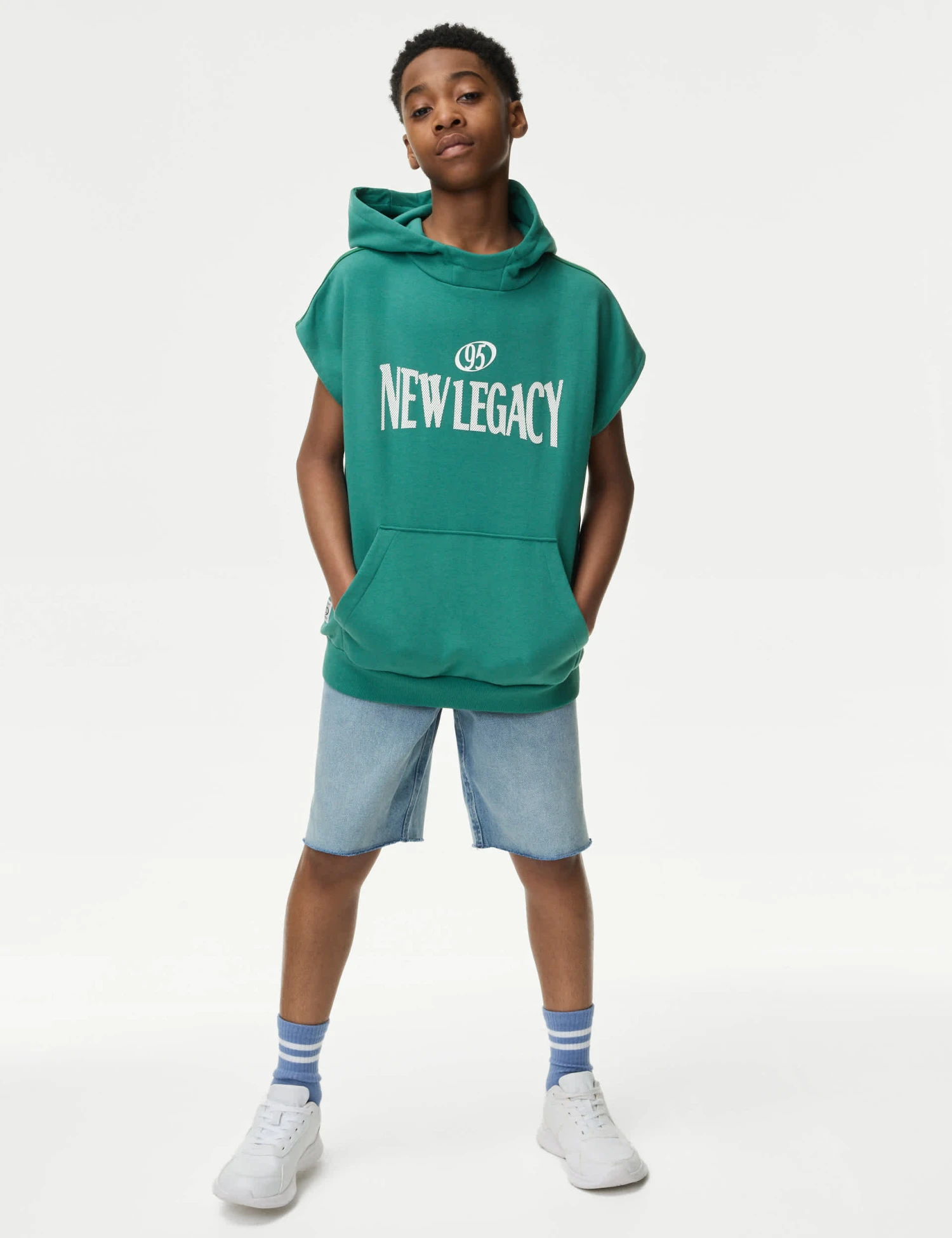 With its sporty design, this cotton-rich sleeveless sweatshirt is a great choice for active kids. It’s made in a regular fit, with a cosy hood and a handy kangaroo pocket. A bold slogan on the chest reads ‘New Legacy’.