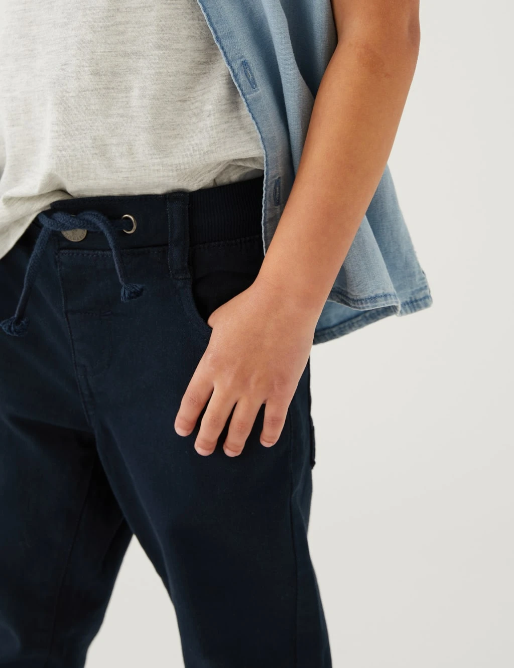 Update their casual uniform with these stylish cotton-rich jeans. Cool skinny fit with added stretch for movement. They feature a pull-on elasticated comfort waist, with a drawstring and button closure for a secure feel. We only ever use responsibly sourced cotton for our clothes.