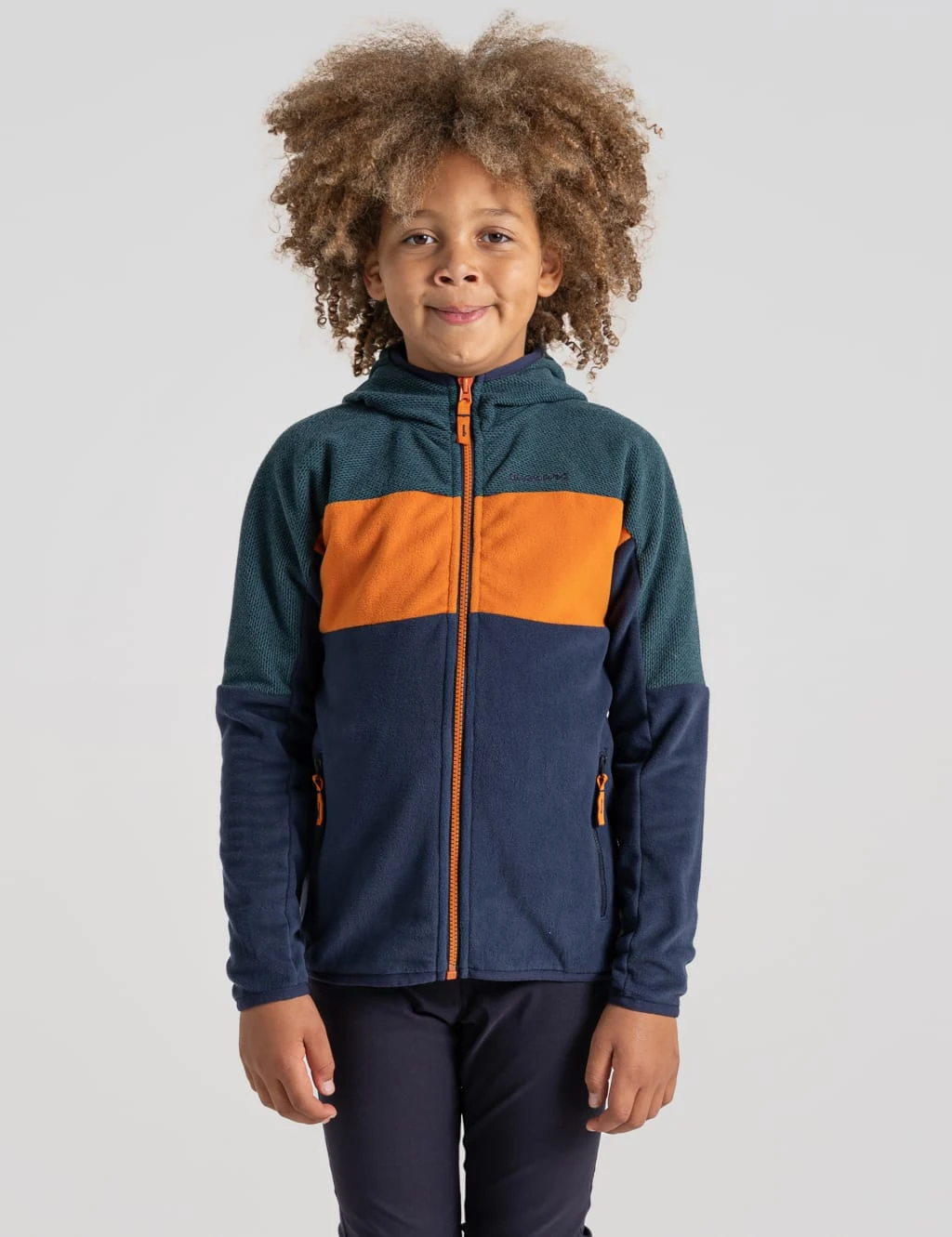This colour block fleece jacket from Craghoppers is ideal for their outdoor adventures. The lightweight style is crafted to a relaxed fit, with a full-length zip fastening and two practical side pockets. It’s complete with an insulated lining, a cosy hood and long sleeves to keep them warm.