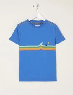 Let them splash around in this cool rash vest from FatFace. It’s made to a regular fit, with a half-zip fastening at the neck for easy on and off. The long sleeves are decorated with an imaginative teeth print, while a striking crocodile graphic complete with a fun slogan enlivens the back.