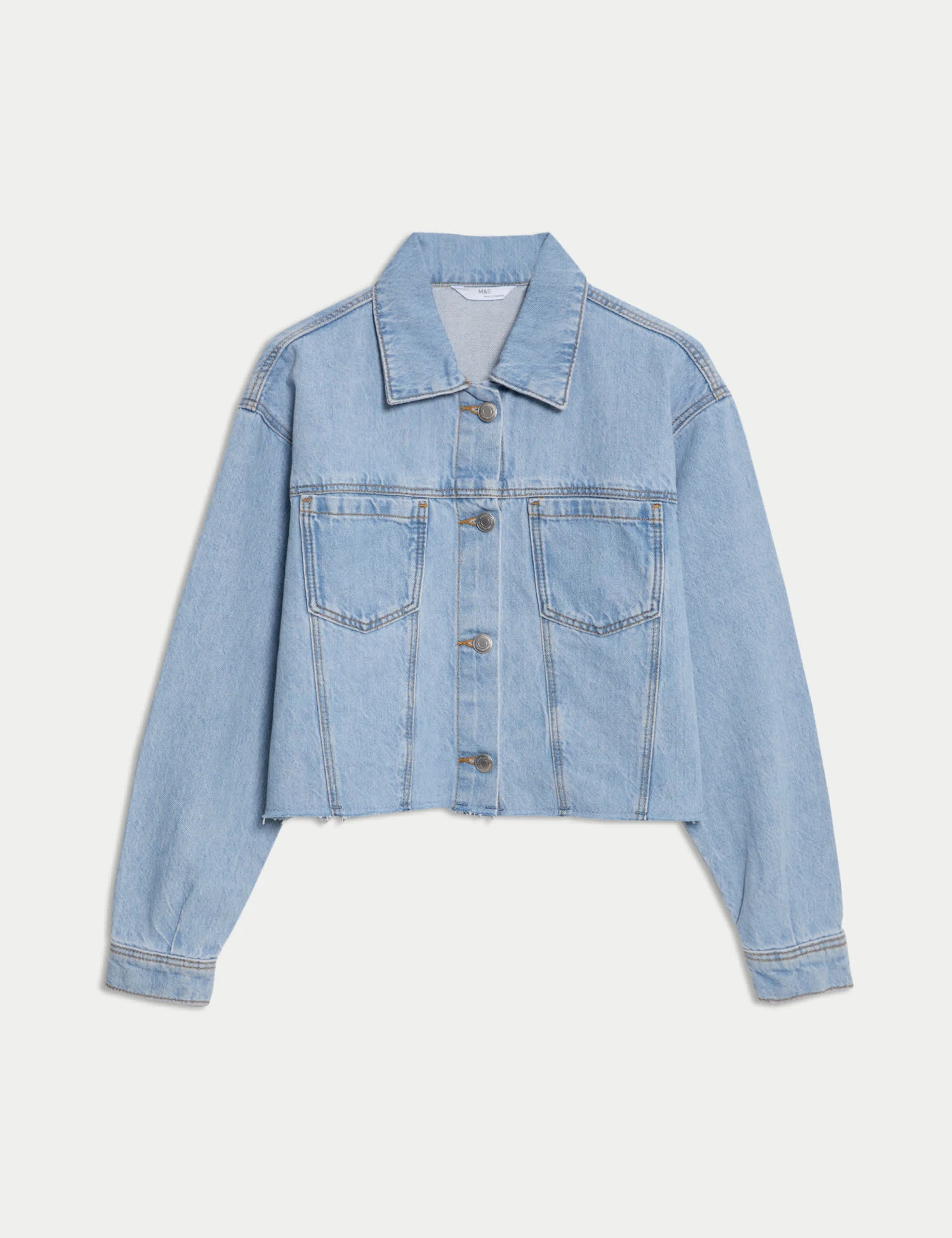 This denim jacket is a great choice for casual days. It’s made in a regular fit, with a cropped length and a collared neckline. A button fastening and two chest pockets complete the look.