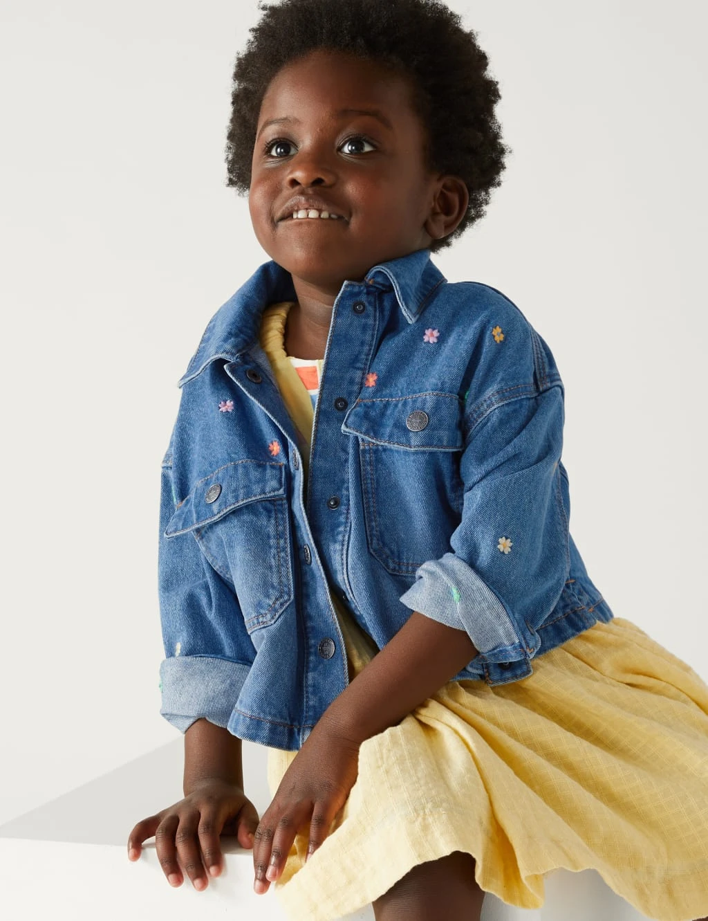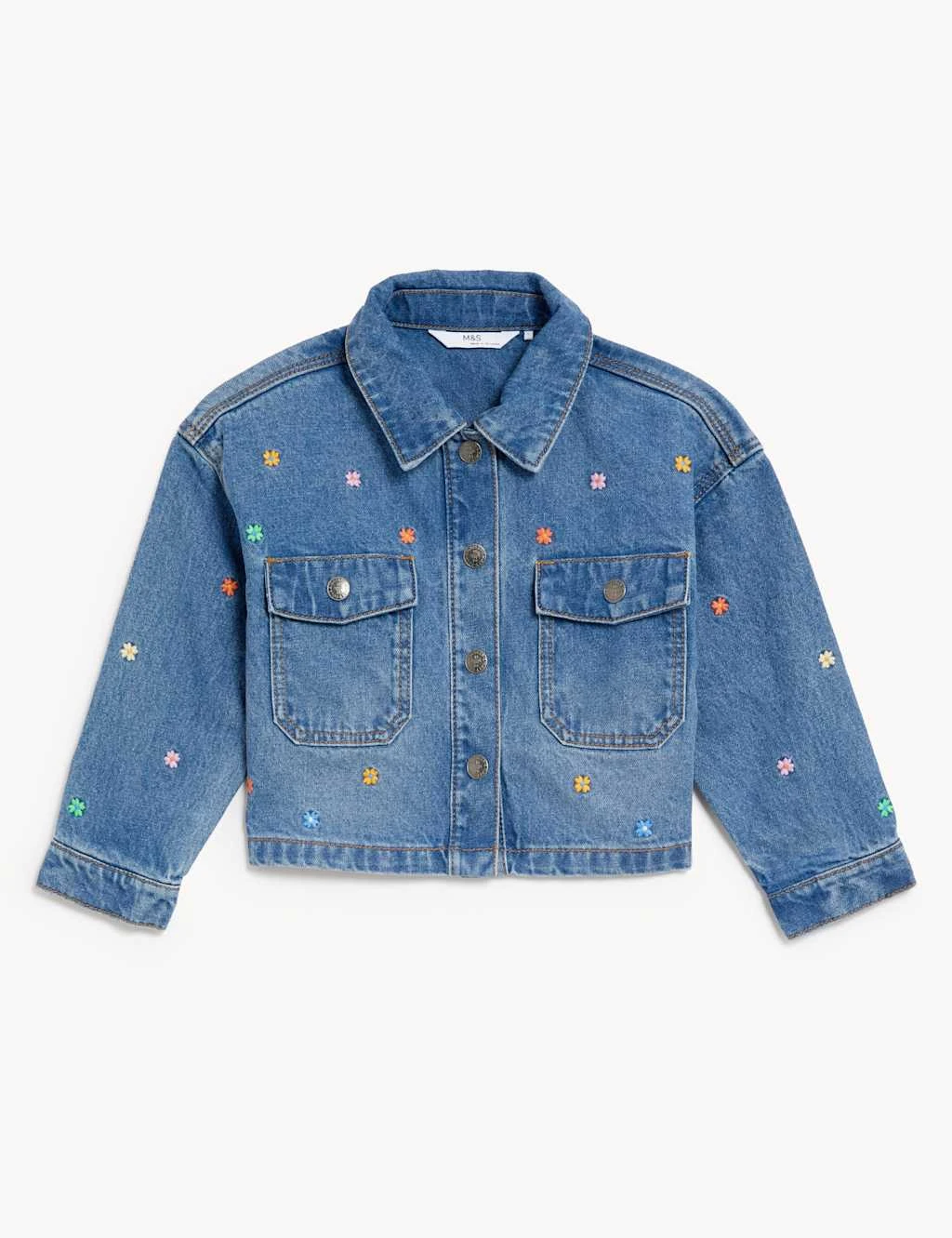 This denim jacket is embellished with all-over floral embroidery for a fun and playful feel. It’s cut in a comfy regular fit, with a cropped boxy shape that gives a cool silhouette. Top-stitched seams and patch pockets on the chest add jeans-inspired detailing.