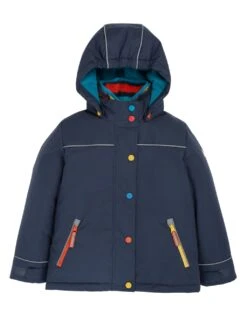 Drizzly days call for this waterproof raincoat from Frugi. This clever 3-in-1 design can be worn as a separate hooded coat and a rainbow stripe gilet, or with the two layered together for extra warmth. The coat is part-lined with cosy fleece and has a funnel neck and riptape straps on the cuffs to keep the cold out. Colourful buttons and zip fastenings on the pockets add a fun feel. Made with recycled polyester.