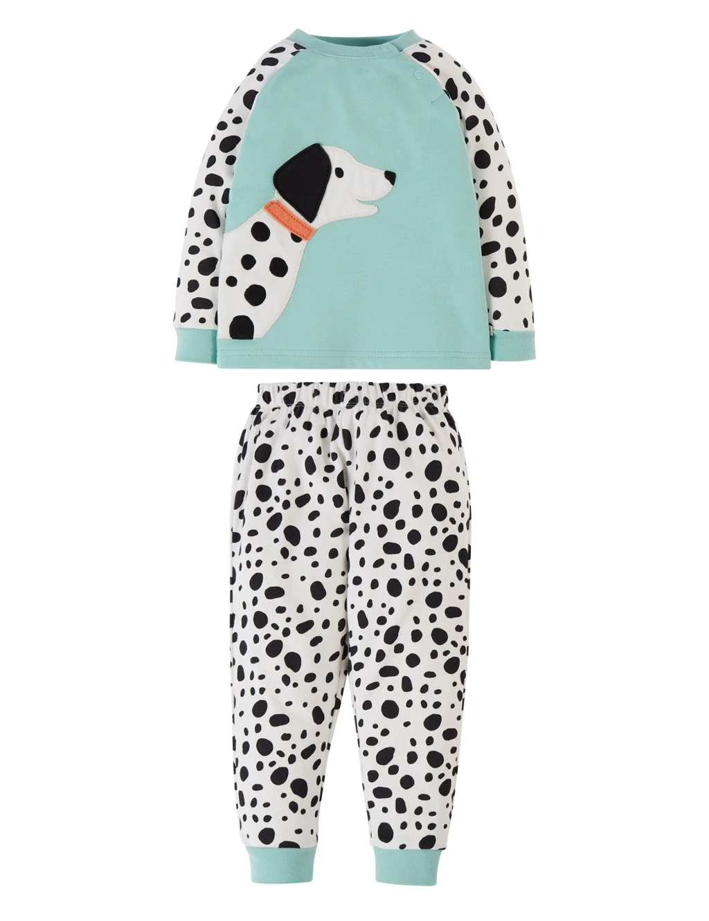Little animal lovers will adore these organic cotton Frugi pyjamas, complete with a bold dalmatian print. Made to a regular fit, they comprise a long-sleeved top and a pair of full-length bottoms with an elasticated waist. The design is finished with neat ribbed cuffs and an adorable puppy appliqué on the top’s front.