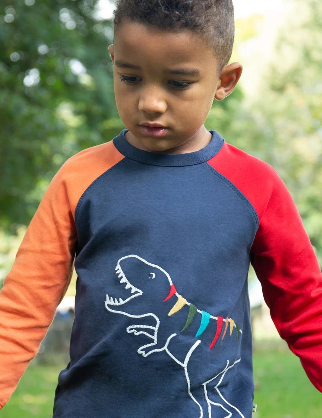 Kids will look roar-some in this pure organic cotton t-shirt by Frugi. It’s crafted in a regular fit and features an embroidered dinosaur with colourful stripes for a fun effect. Contrast-colour long sleeves accentuate the playful look, while a round neck offers easy wear.