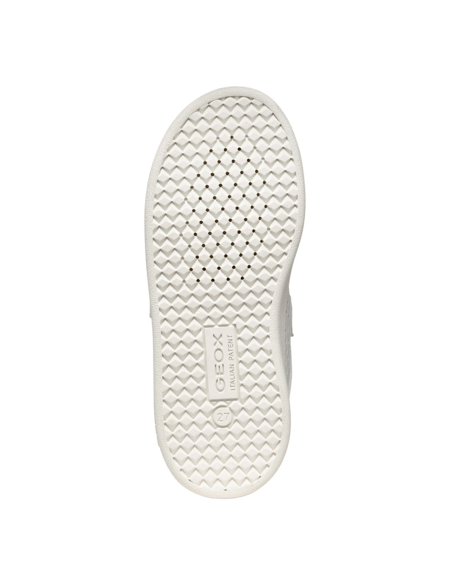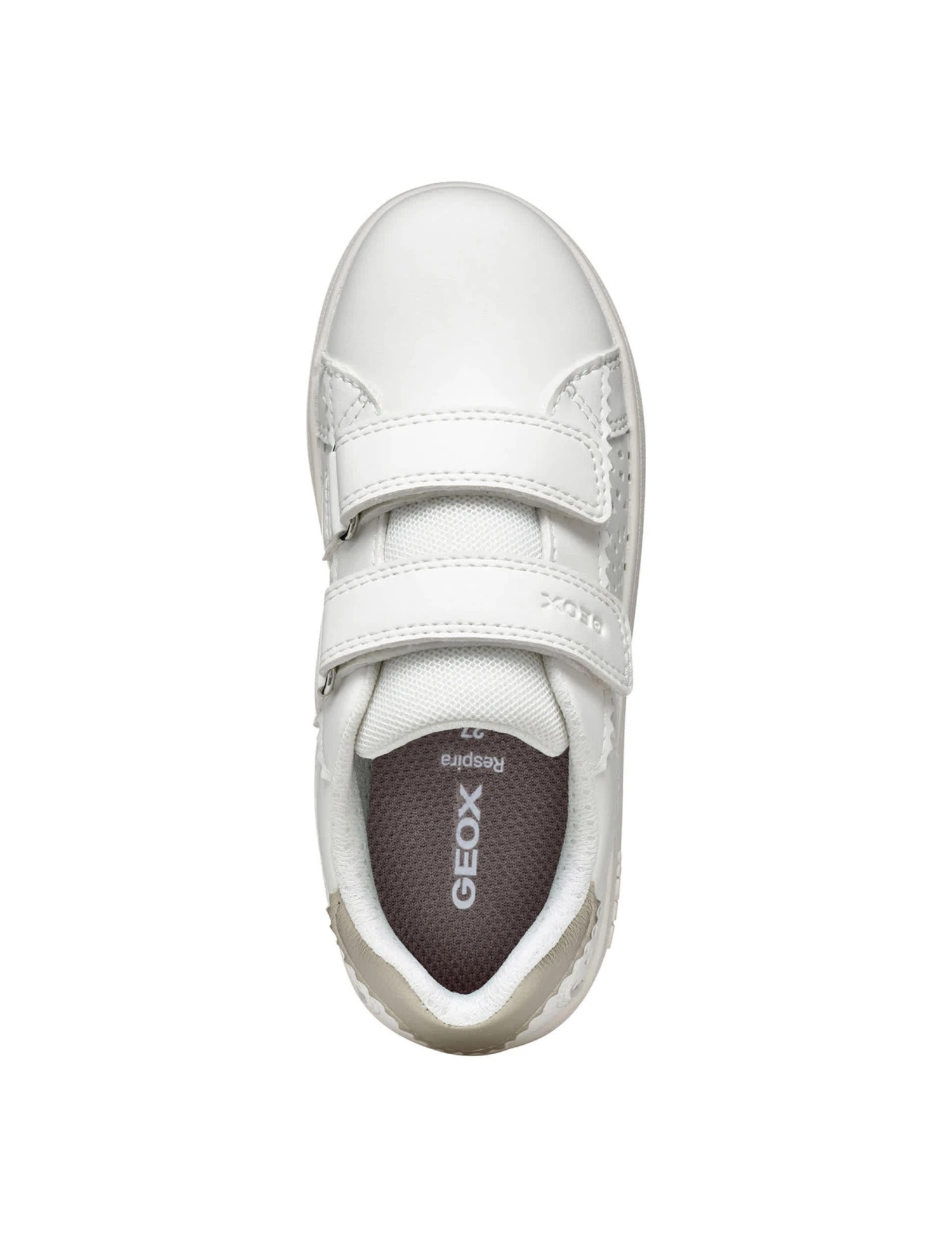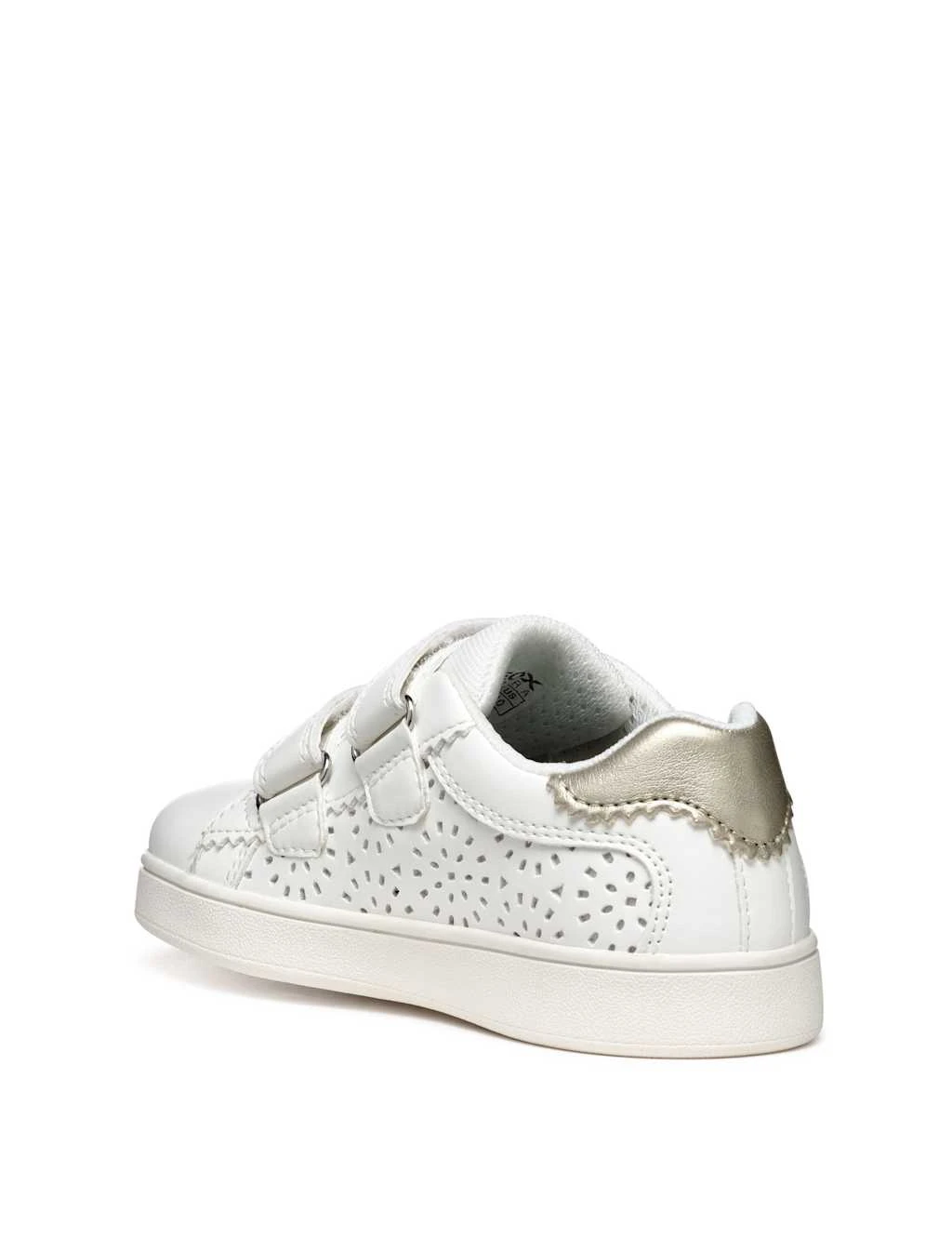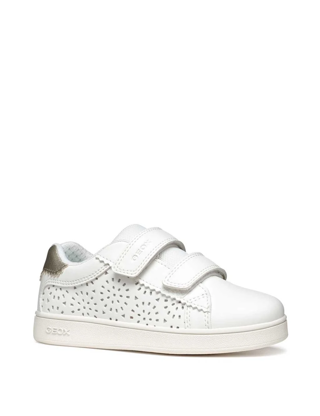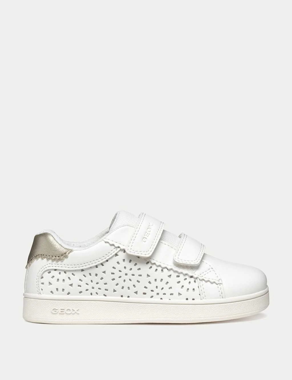 Kit them out for active days with these trainers from Geox. They feature a riptape fastening for quick and easy changing. The uppers are crafted from durable faux leather, with a cut-work pattern and metallic trims for a fun look. The thick soles ensure long-lasting wear.