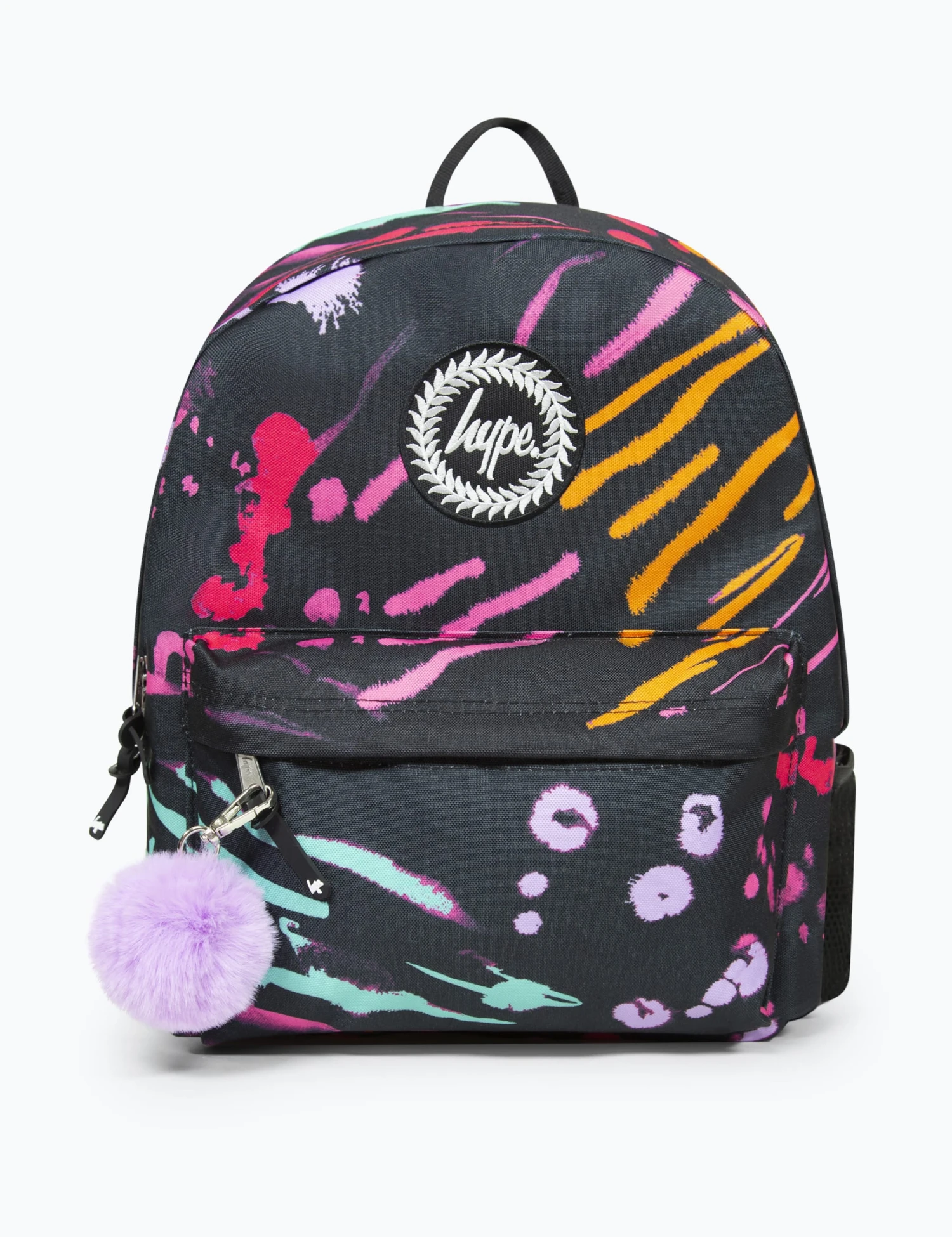 This Hype backpack has a colourful scratch design, which kids will love showing off at school. The main compartment closes with a zip. Plus, there’s another zipped pocket at the front with a fluffy keychain for extra storage. Adjustable straps offer all-day comfort and a top loop provides a handy hanging option.