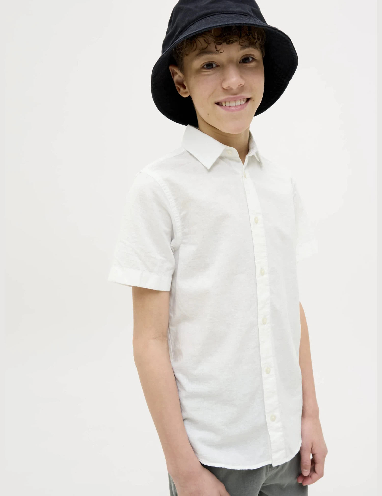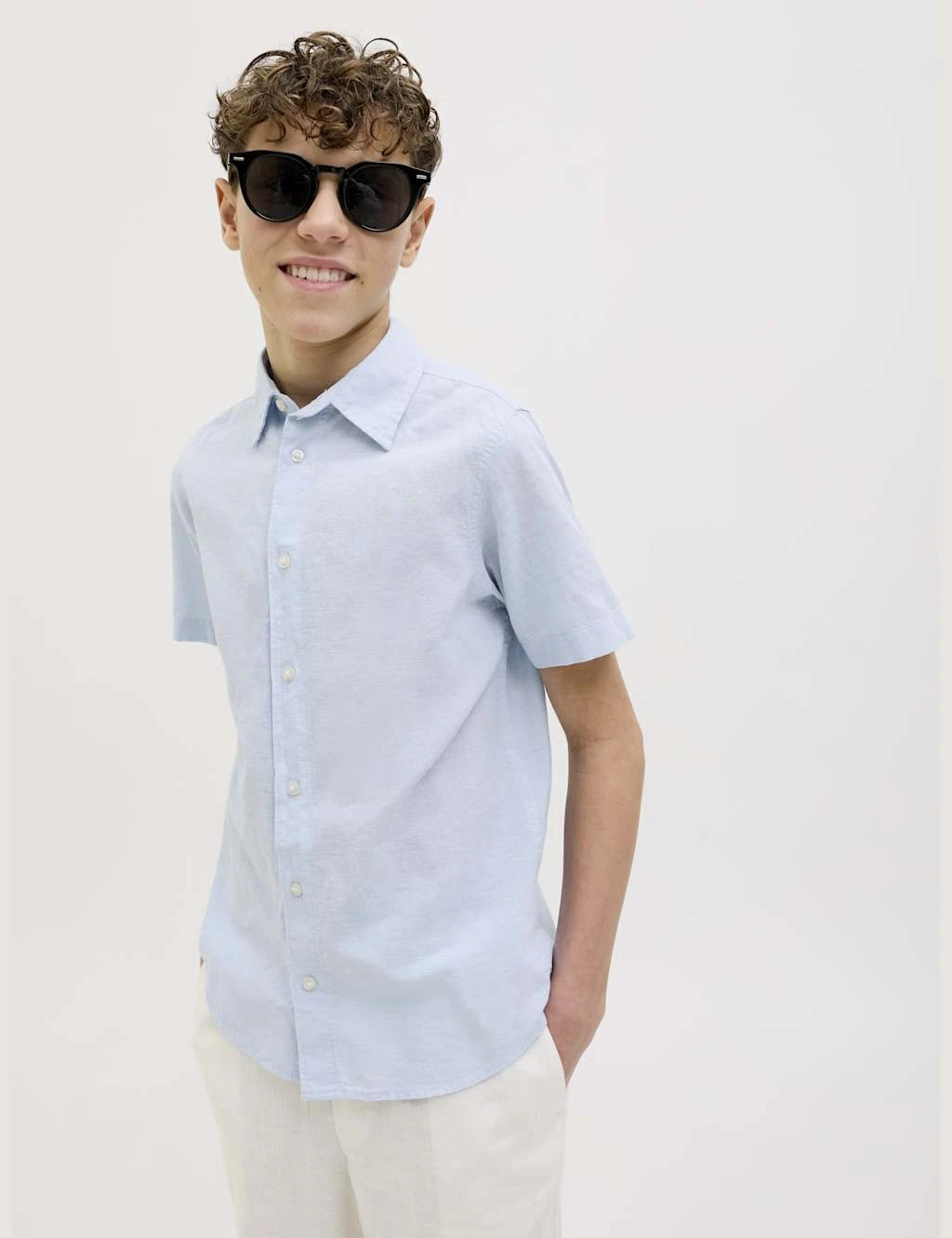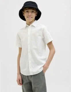 Cotton-rich fibres blended with linen make this shirt from JACK & JONES JUNIOR an ideal choice for summer occasions. It’s cut in a comfy regular fit with a neat collared neckline and breezy short sleeves. A classic button-through fastening completes the piece.