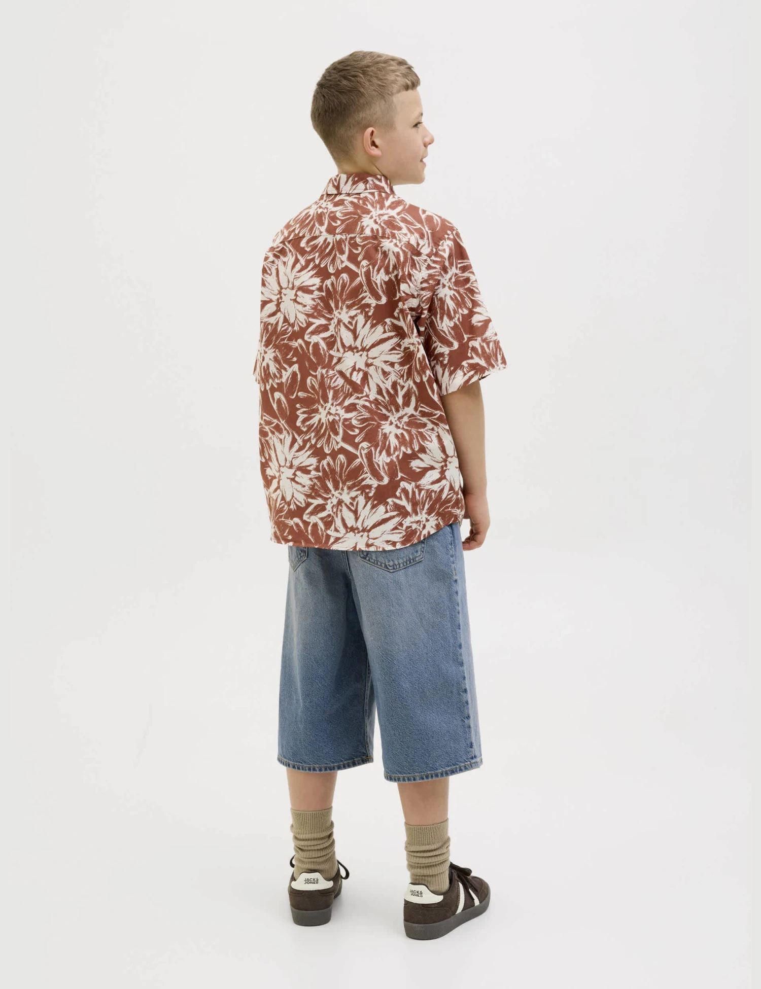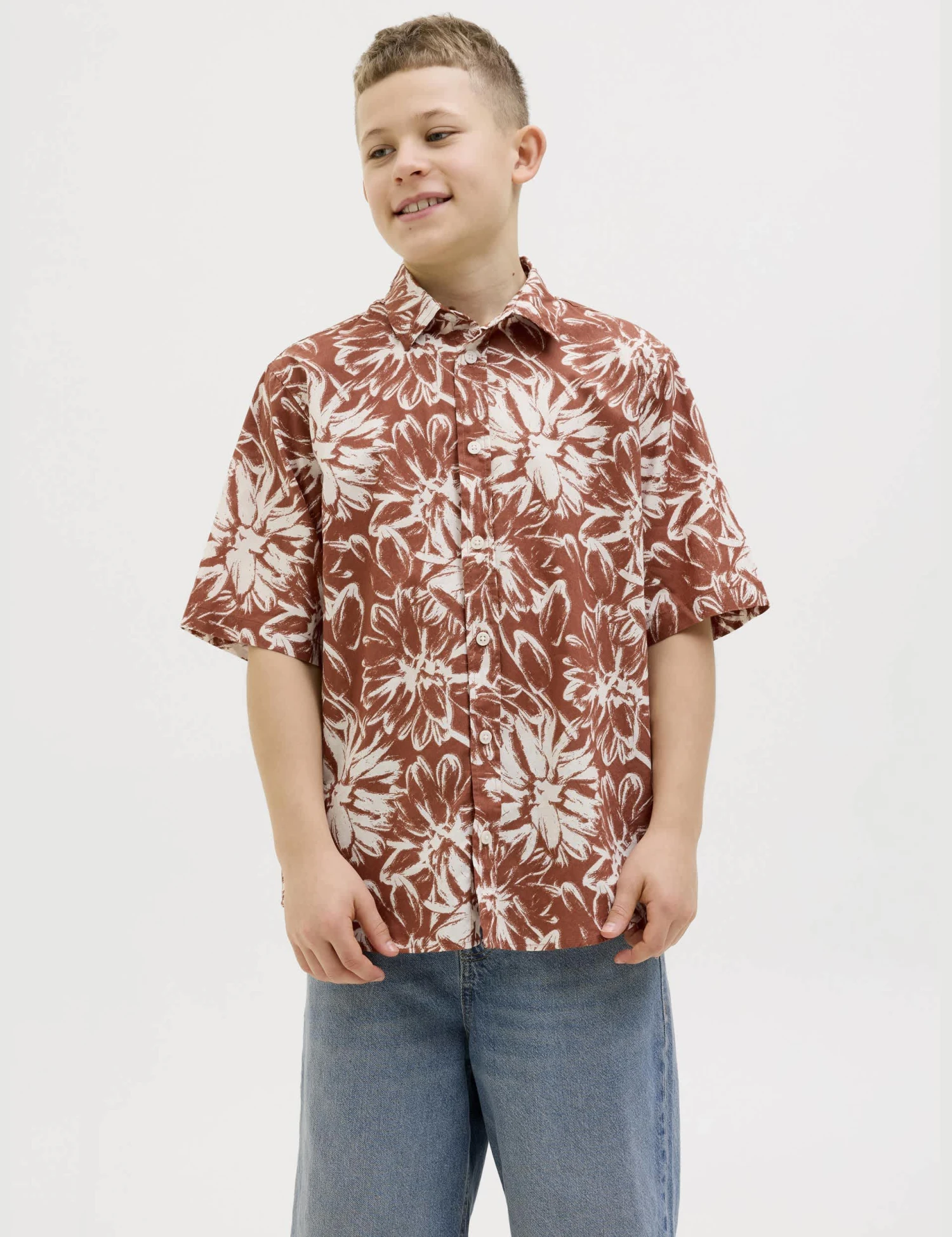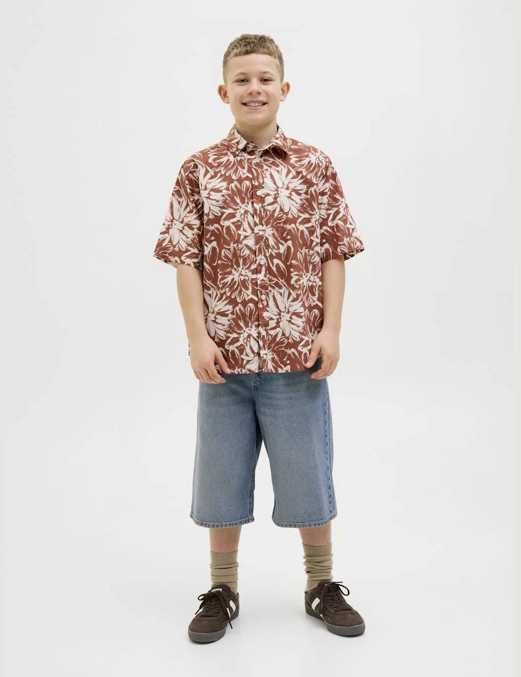 On warm days, this pure cotton twill shirt from JACK & JONES JUNIOR feels lightweight and breezy. Easy loose fit, with a collared neckline and short sleeves. The vibrant graphic print adds a modern and eye-catching finish.
