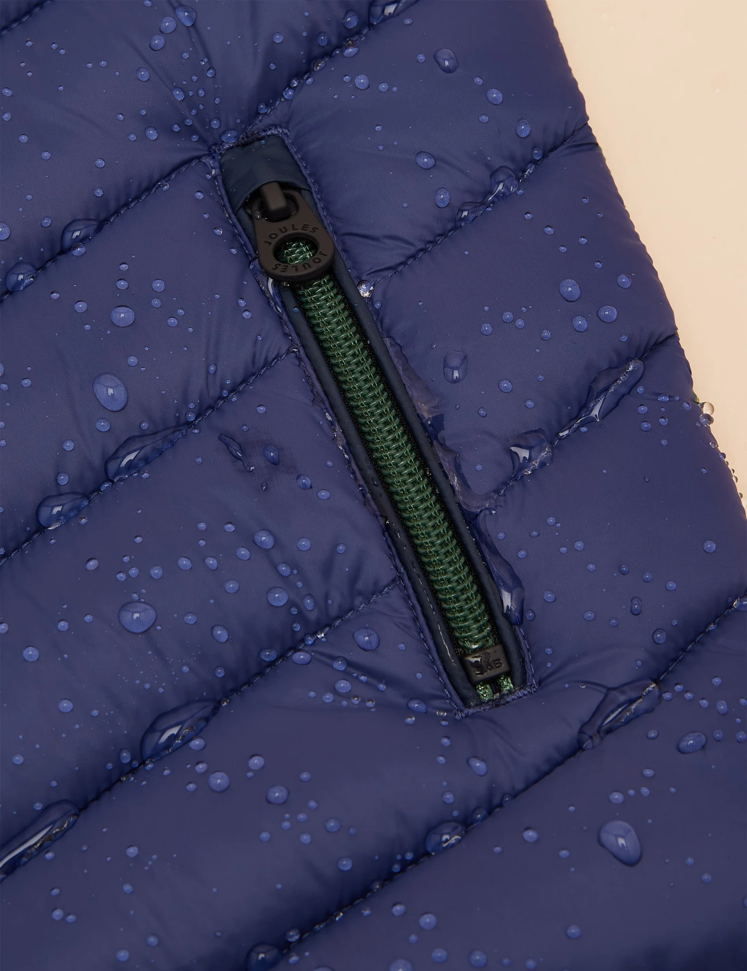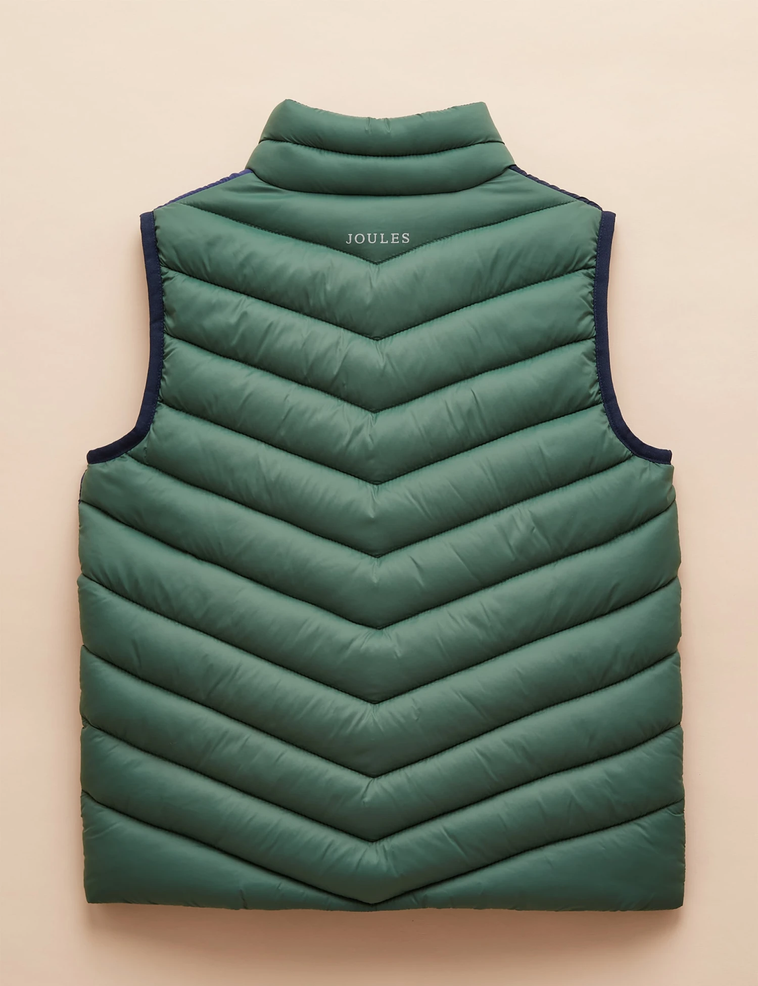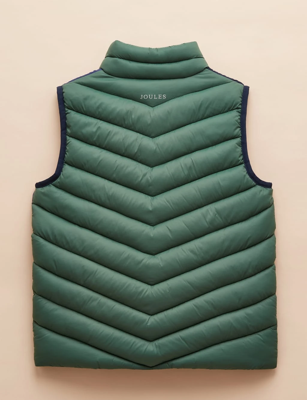 This colour block gilet from Joules is a practical choice for changeable weather. Regular fit, with chevron quilting inside and out along with padding for extra warmth. A showerproof finish helps to keep them dry in wet weather. This piece fastens with a zip that features a chin guard for comfort and is complete with two zipped side pockets. Finished with a printed hare motif on the chest.