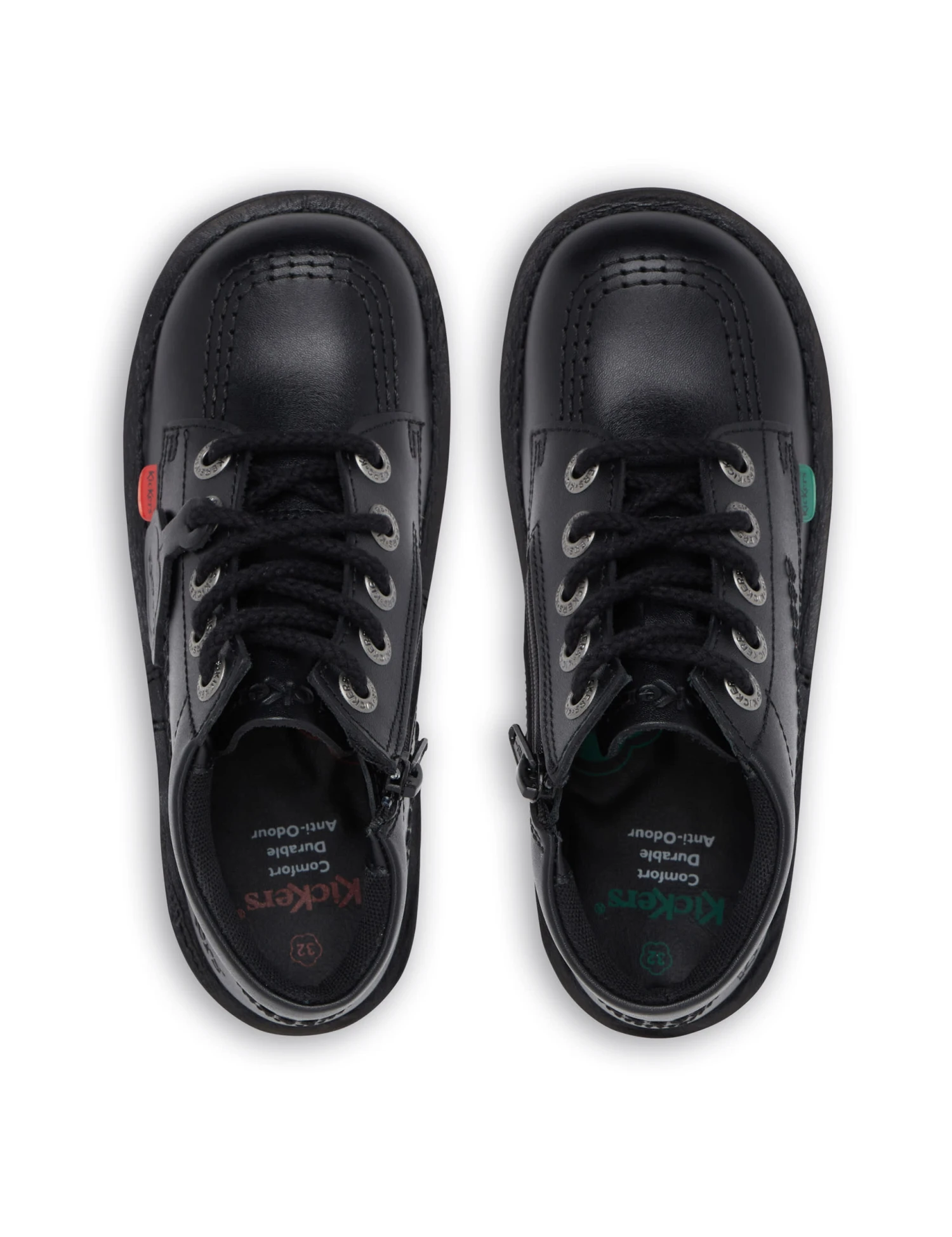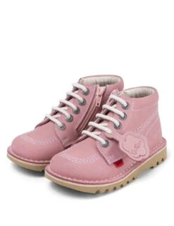 Add a touch of cool to your youngster’s school look with these Kick Hi Zip leather ankle boots from Kickers. They’re made in the brand’s classic Kick Hi style, with a chunky sole for durability and grip. A zip fastening makes them easy to get on and off, while the iconic triple stitching and branded tabs provide a timeless finish.