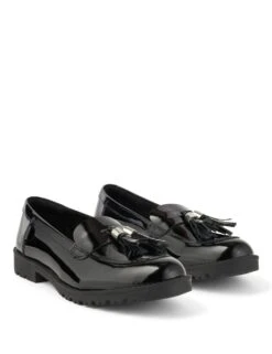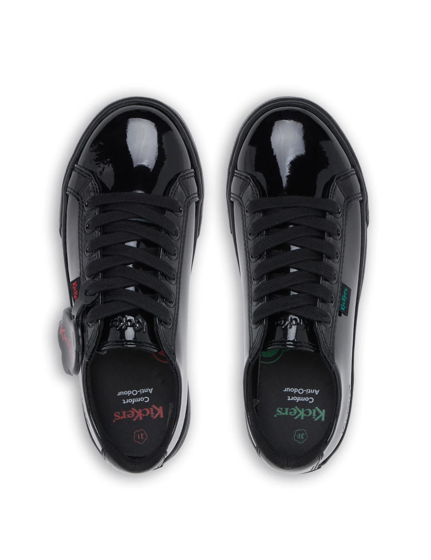 These Kickers school shoes are crafted from patent leather for extra polish. A lace-up fastening offers a secure fit, while a sturdy rubber sole provides comfort and durability for busy days. They’re complete with a branded tab and a tonal charm on the lace.