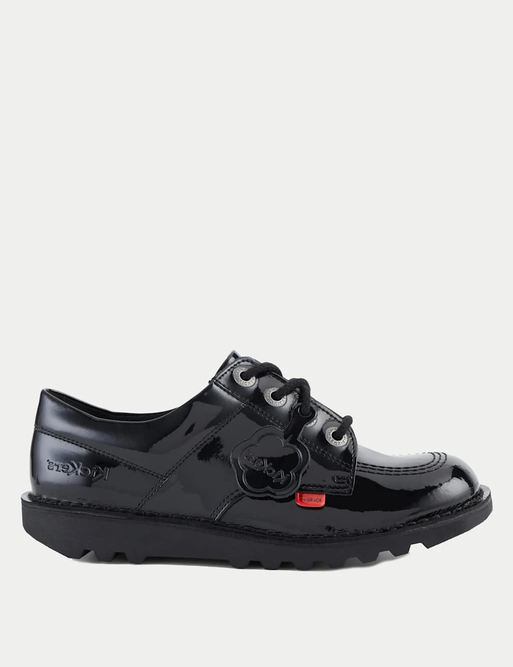 Refresh their everyday staples with these premium patent leather school shoes from Kickers. They’re made in a comfy standard fit with a classic lace-up fastening. Signature branding and colour pop tabs add authentic details.