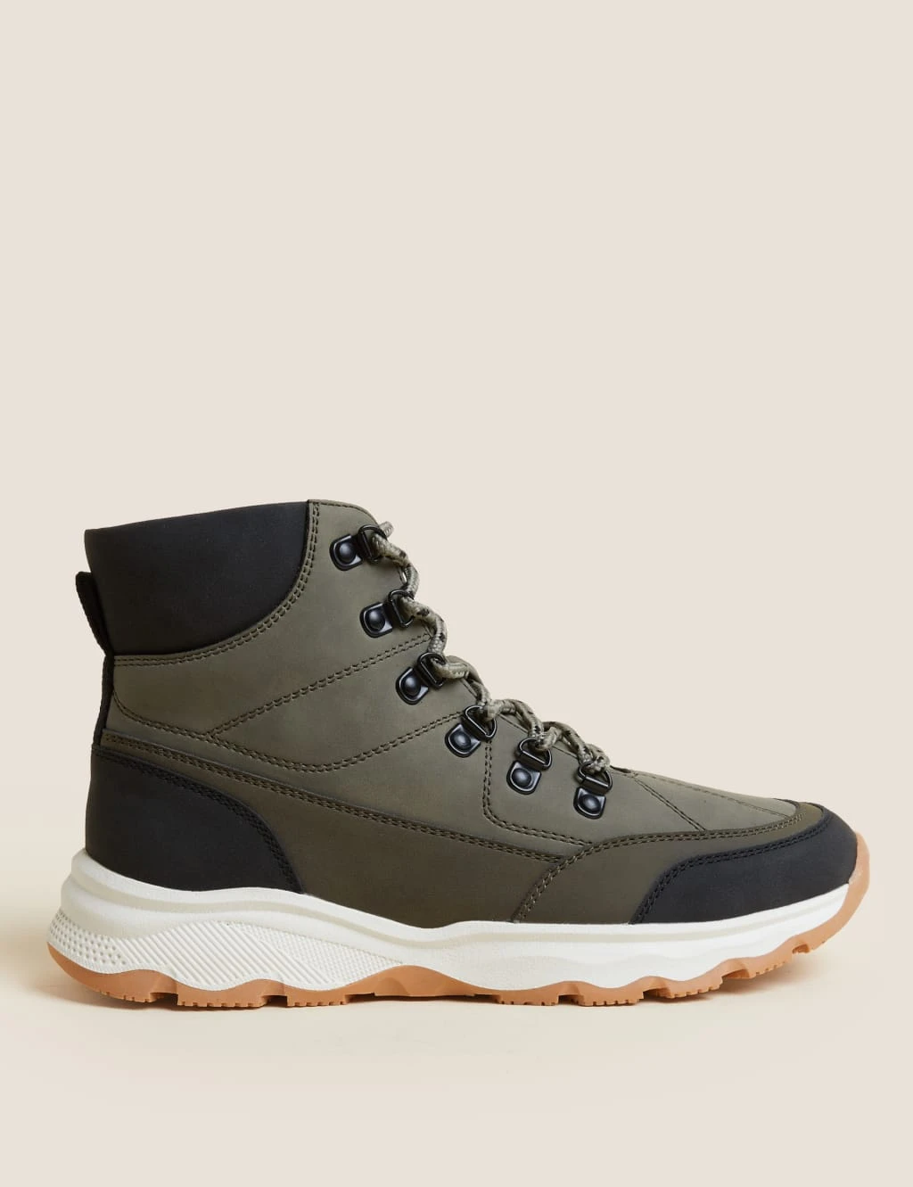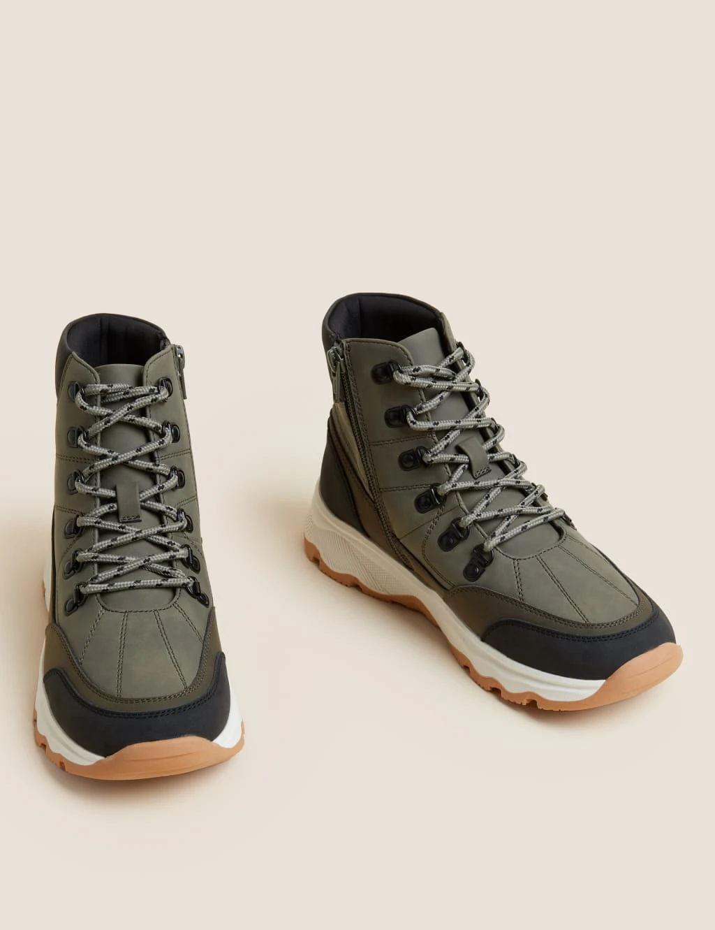 Let them explore the great outdoors in style with these classic hiker boots. Comfy standard fit with a zip fastening on the side for easy dressing. Featuring water-repellent Stormwear™ technology. A chunky sole adds a modern look. Complete with Freshfeet™ technology, helping to combat bacteria that causes odour for all-day freshness.