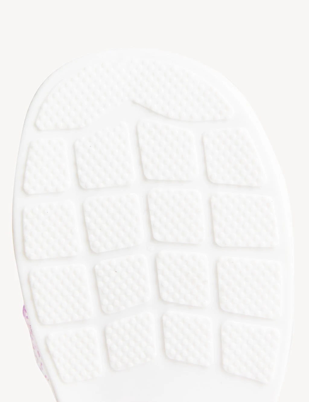 Bring a touch of sparkle to their feet with these glittery jelly sandals. Riptape fastening for easy on and off. Finished with a striped print on the footbed and a matching stripe on the midsole.