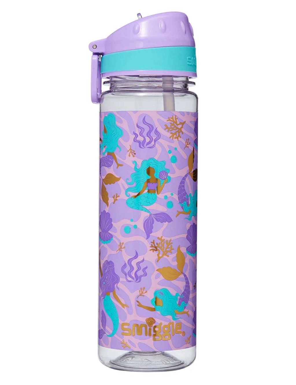Keep them hydrated at school or on the move with this Smiggle water bottle. The flip-up straw helps prevent leaks and spillages, while the screw neck makes it easy to clean and refill. The mermaid princess design brings a playful feel.