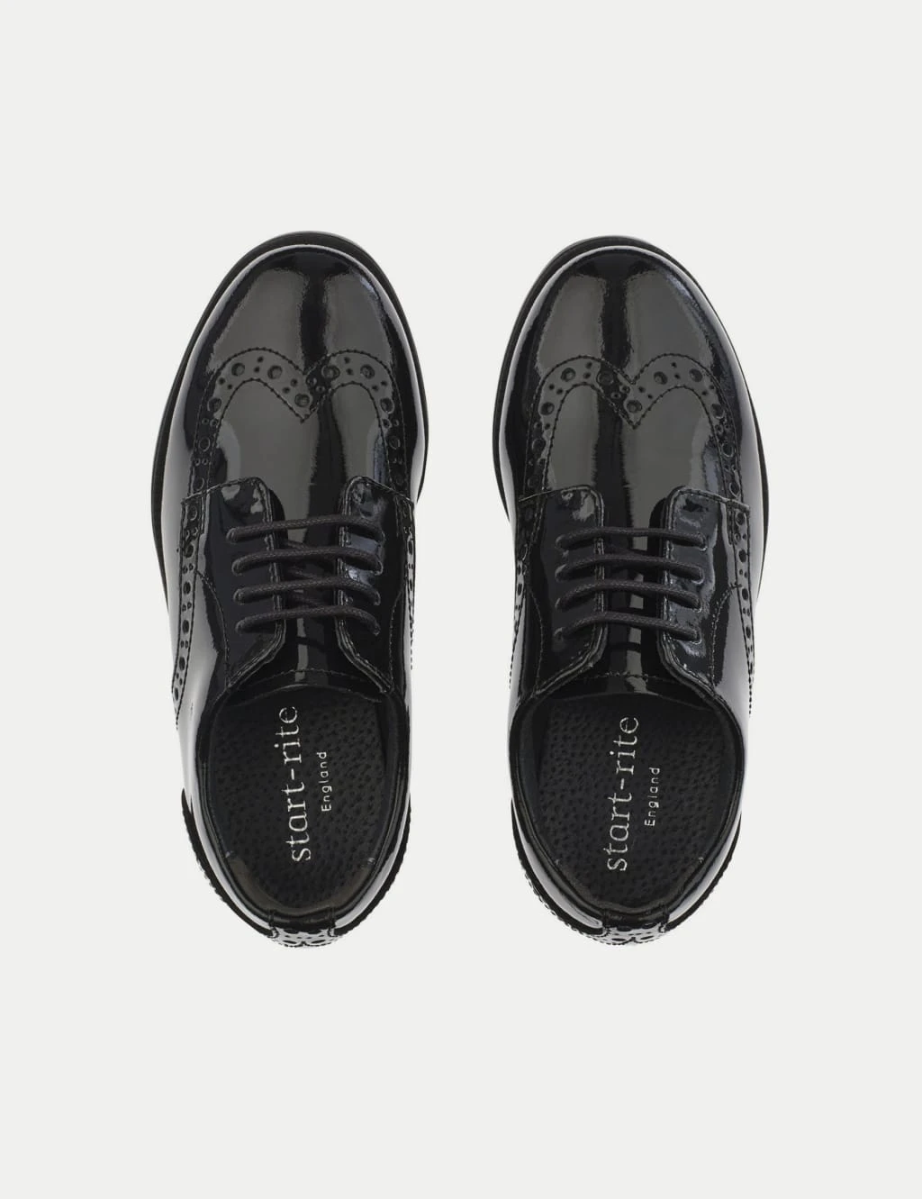 Update their footwear with the patent leather Brogue Snr school shoes from Start-Rite. They’re designed in a lace-up silhouette with traditional punched detailing. A rubber sole offers a flexible feel, while a cushioned ankle provides ultimate comfort.