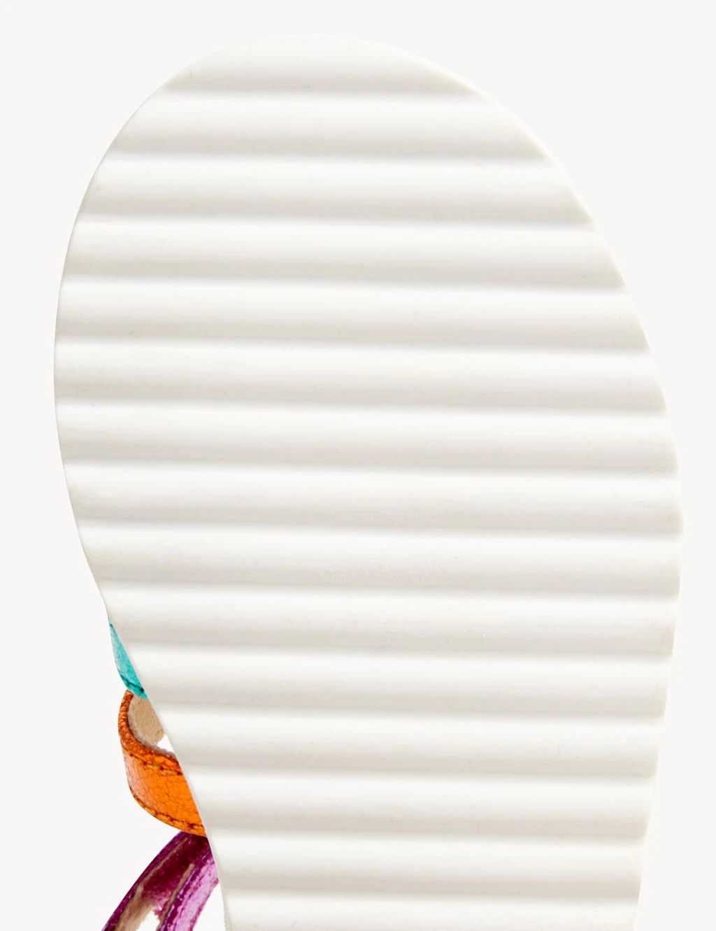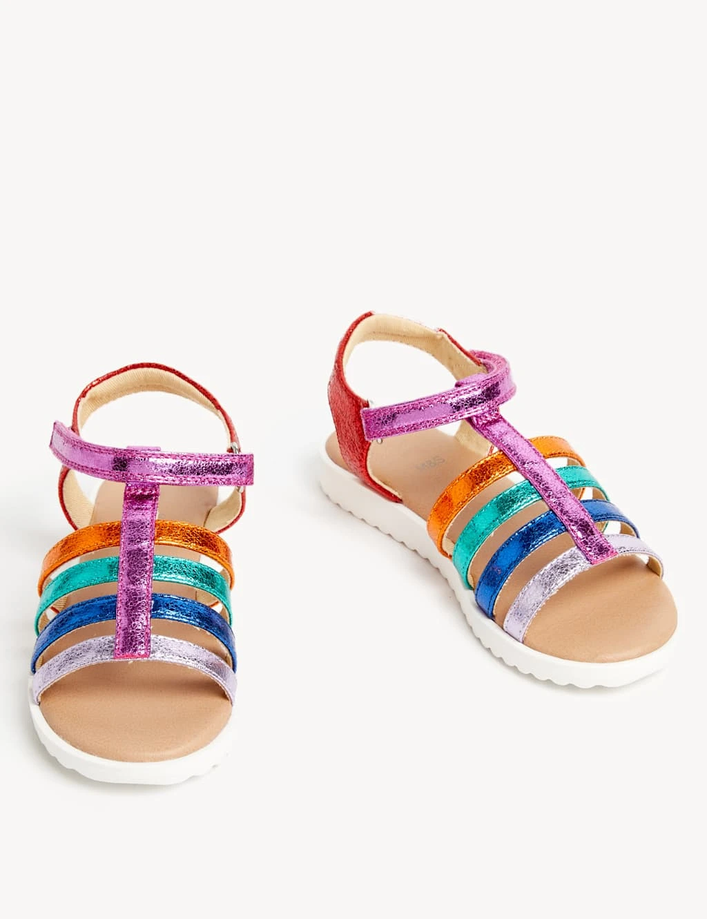 With their multi-coloured straps, these metallic fisherman sandals will make little ones really stand out. Standard fit. Designed with a flat footbed for comfort and riptape fastenings to ensure they feel secure.