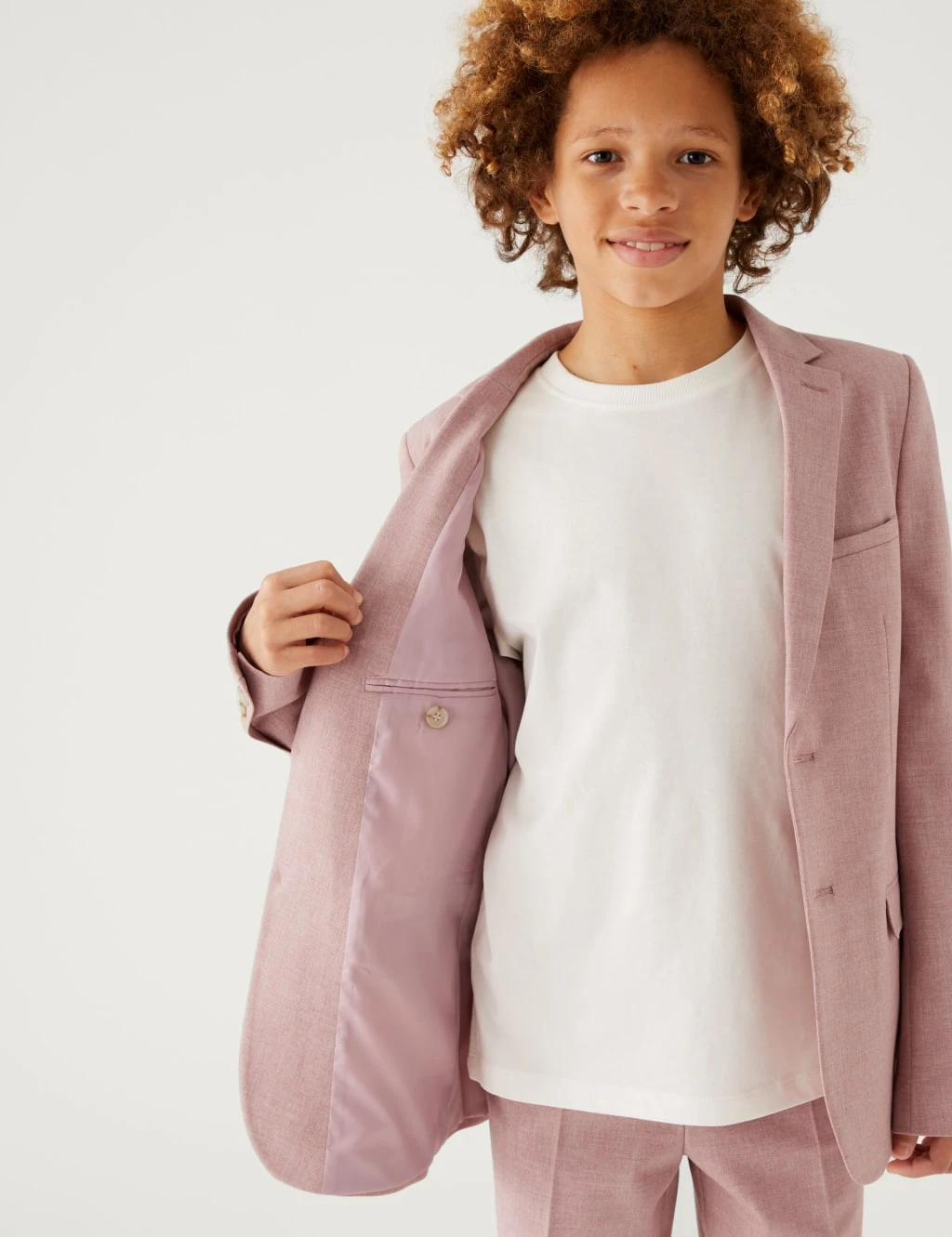 Smart yet cool, this kids’ suit jacket is perfect for special family occasions. On-trend slim fit with added stretch to keep them comfortable all day. The fully lined piece comes complete with traditional detailing, including three-button cuffs, notch lapels and front flap pockets. Part of our Mini Me collection, it has a matching style in our menswear range.