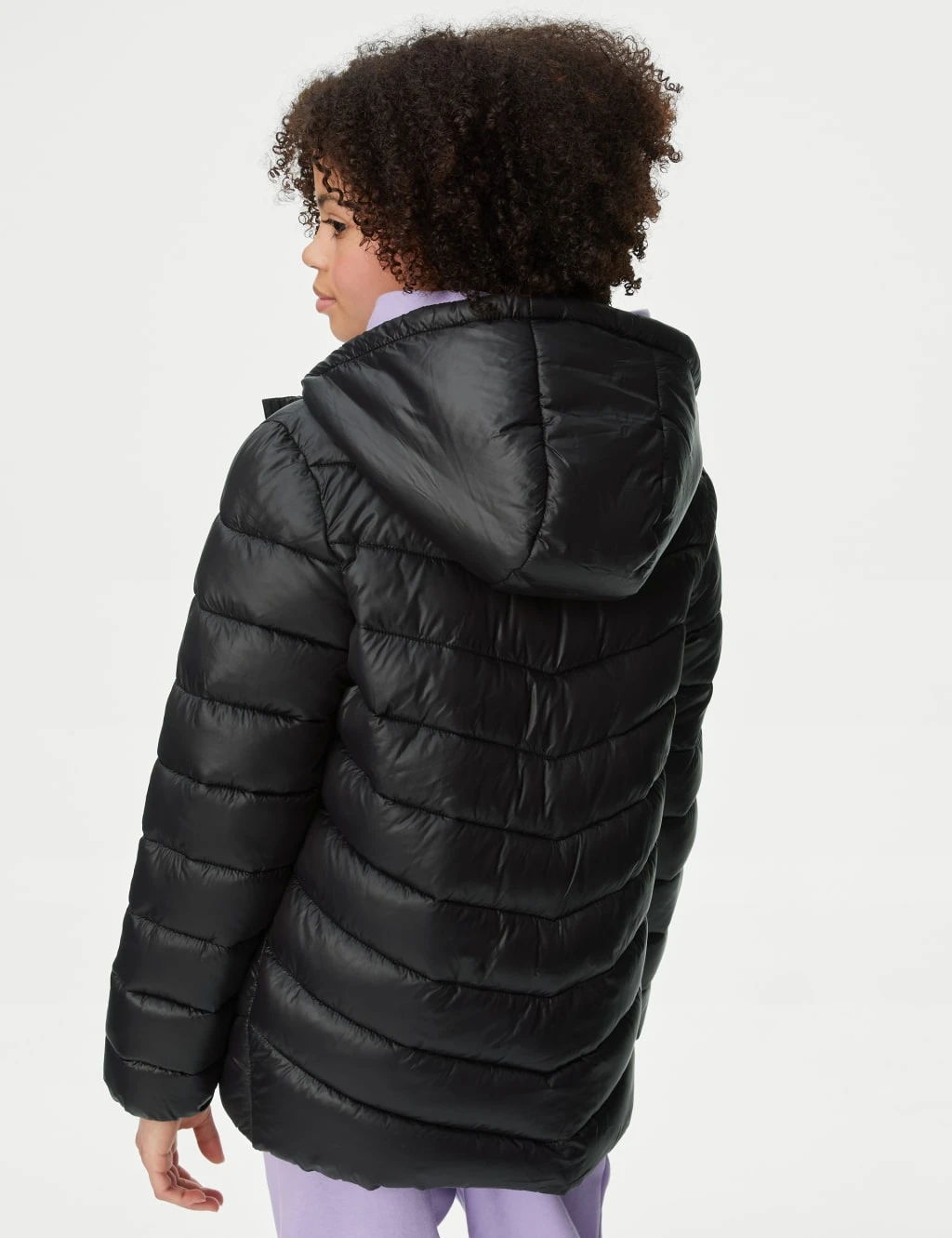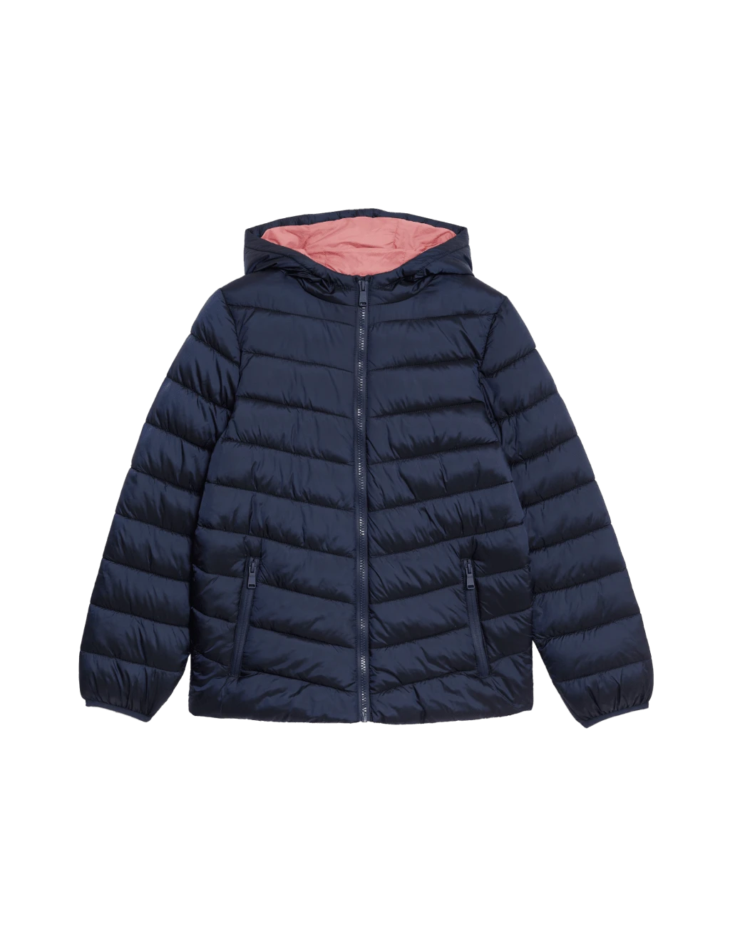With its shimmery finish, this padded jacket is a stylish outerwear choice. It’s made in a regular fit, with an easy zip fastening and cosy hood to help keep them warm. Two pockets provide a place for their bits and bobs.