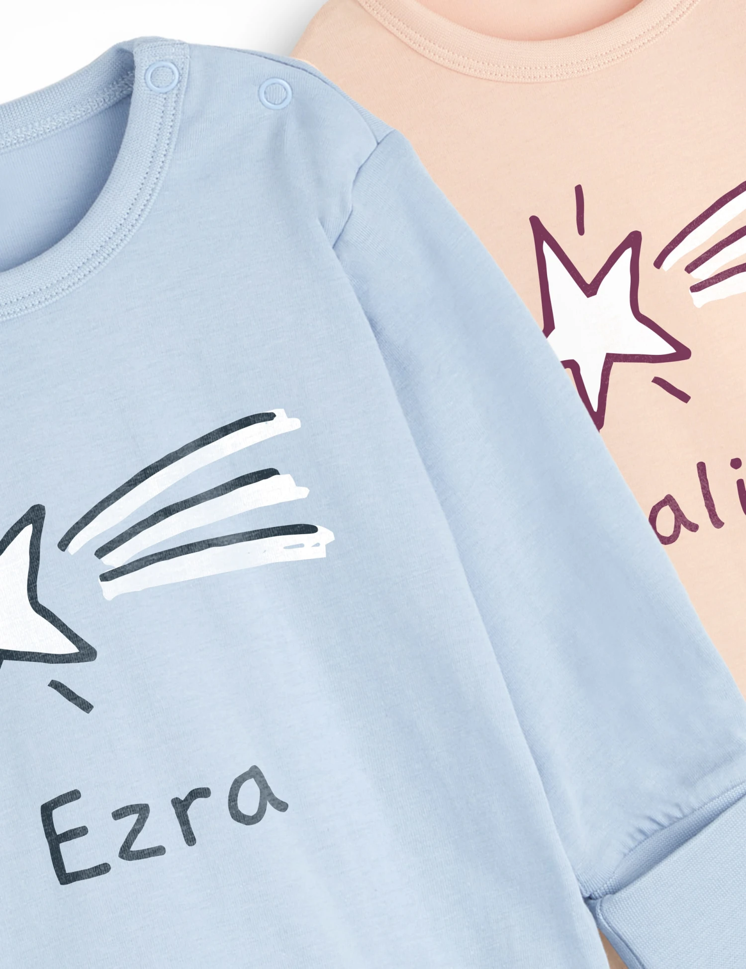 Our toddler shooting star pyjamas will keep your child cosy all night long. Personalisable with your child’s name.Available in 2 colours.(6Mths – 3 Yrs)