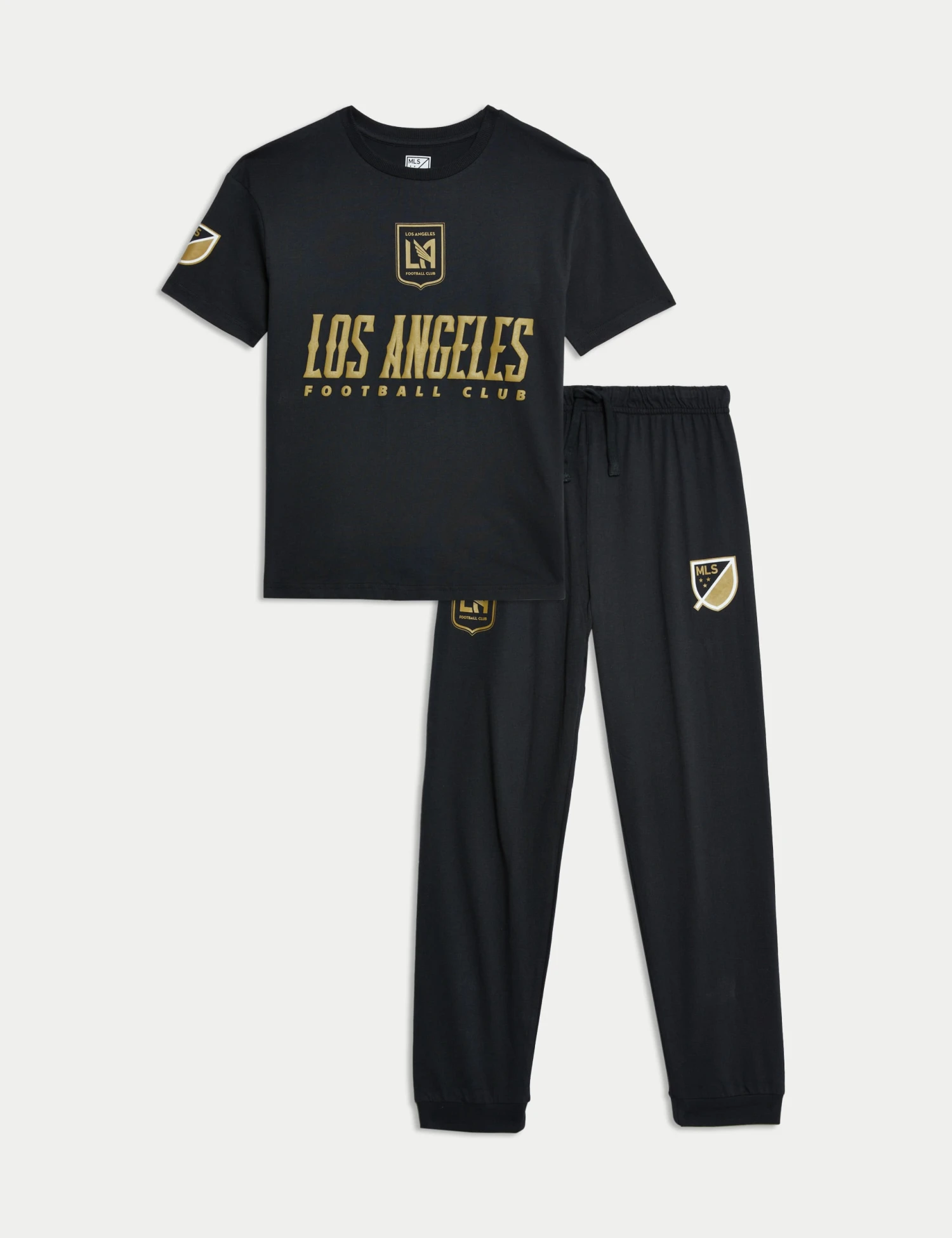 Treat your young soccer fan to these pure cotton pyjamas. Comfy regular fit, with short sleeves and long legs. The top and bottom are both embellished with the name and logo of Los Angeles Football Club™.