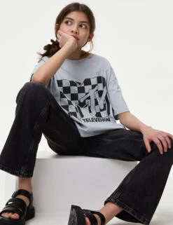 Kids can channel the style of the ’90s with this pure cotton MTV™ cropped t-shirt. Boxy fit, with a round neck and short sleeves. The front is decorated with the iconic MTV™ logo.