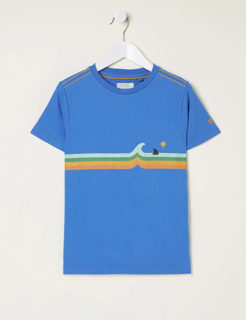 Kids can keep things casual with this pure cotton t-shirt from FatFace. It’s designed in a comfy regular fit with an easy crew neckline. On the front is a striped wave print with a sun and a shark’s fin. The piece is finished with contrast stitching at the shoulders and an embroidered logo on the sleeve for a premium feel.