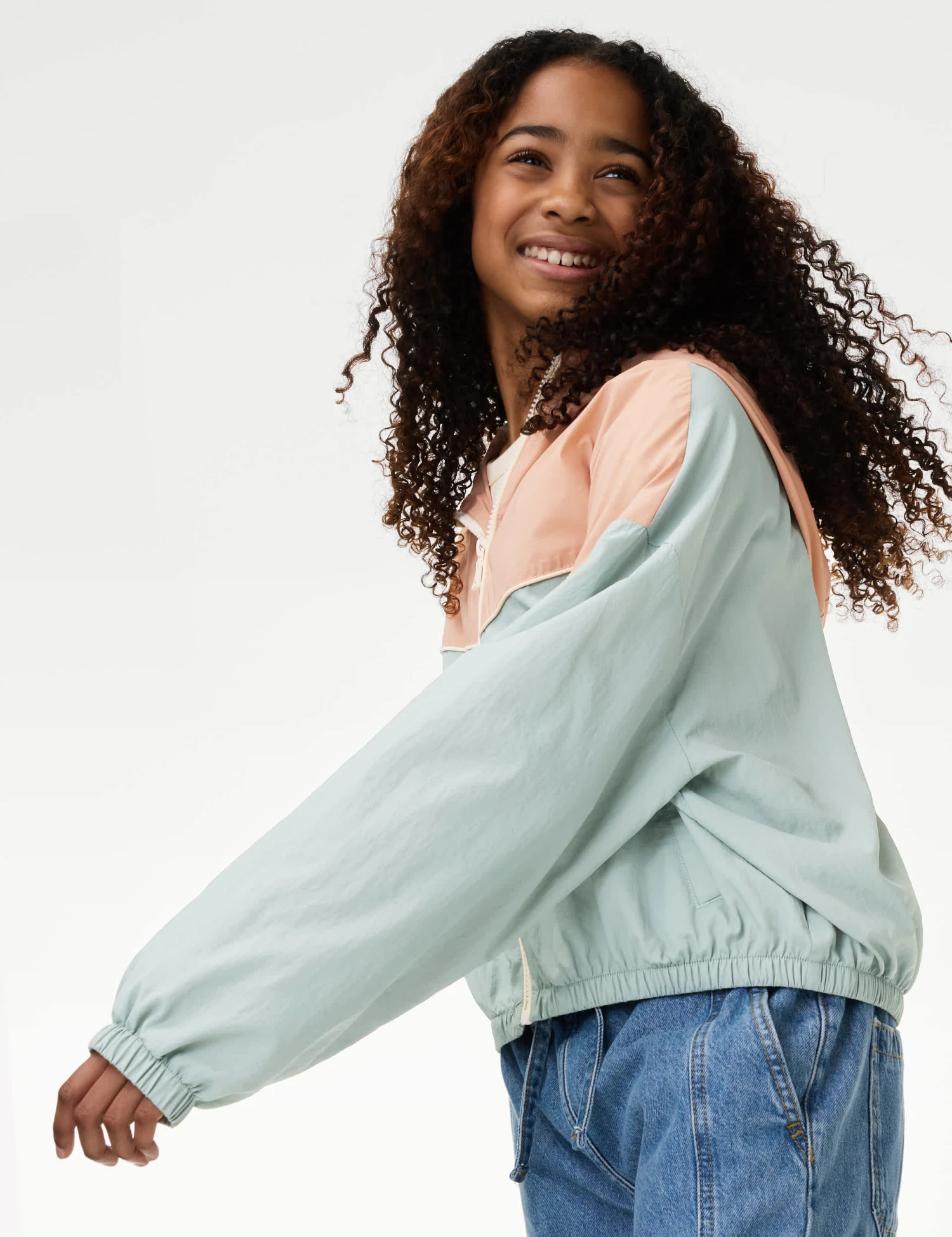 This lightweight windrunner jacket is perfect for outdoor adventures. It’s designed in a regular fit, with a zip-up fastening and a hooded neckline. Reflective detailing ensures they’re visible in low-light conditions. The elasticated cuffs and hem help keep out the wind, while two side pockets keep their essentials handy.