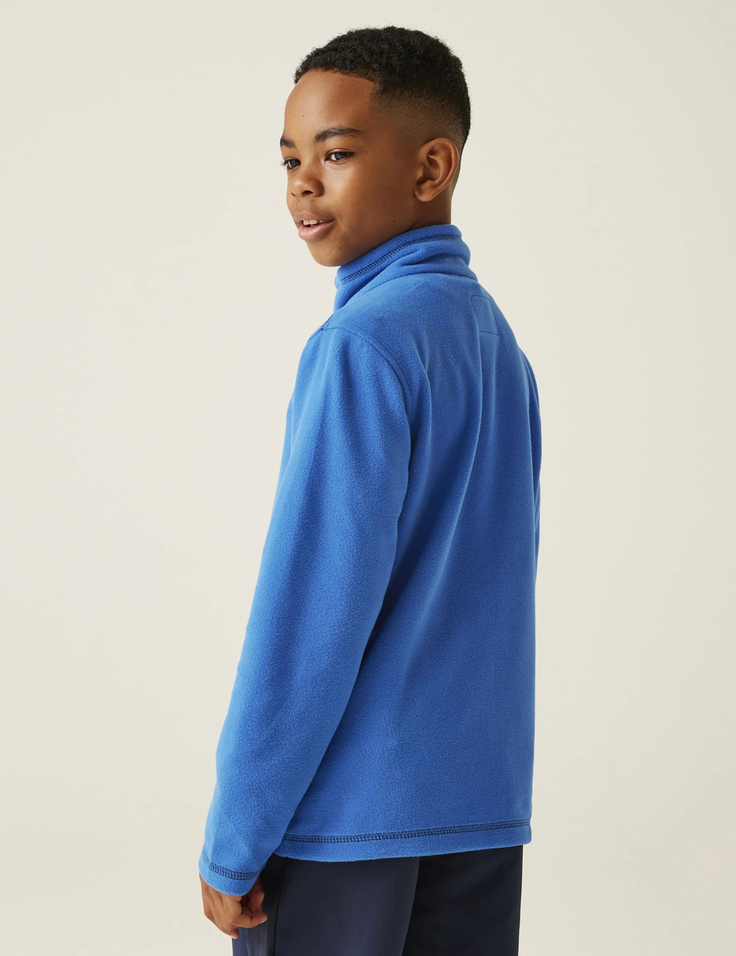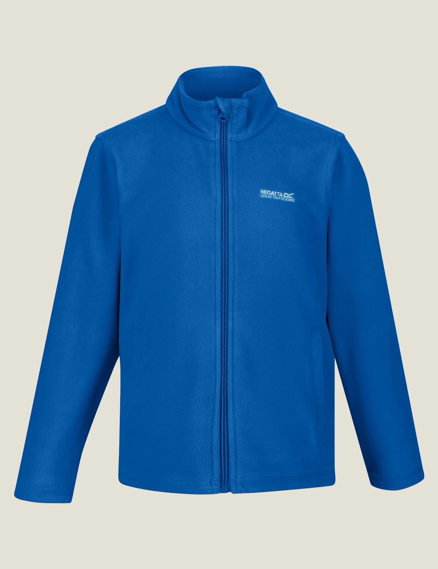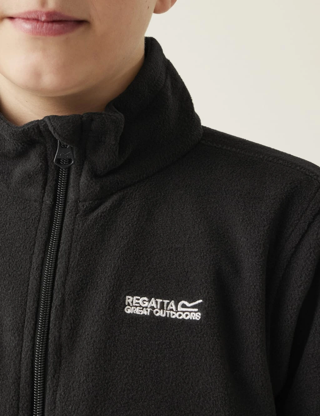 Your young explorer can layer up in the King II fleece from Regatta. It’s made in a regular fit, with a funnel neck and a full-zip fastening with a chin guard for added comfort. The brand’s soft Symmetry fleece fabric is brushed on one side for a cosy feel and anti-pill on the other to withstand time. Two side pockets provide handy storage.