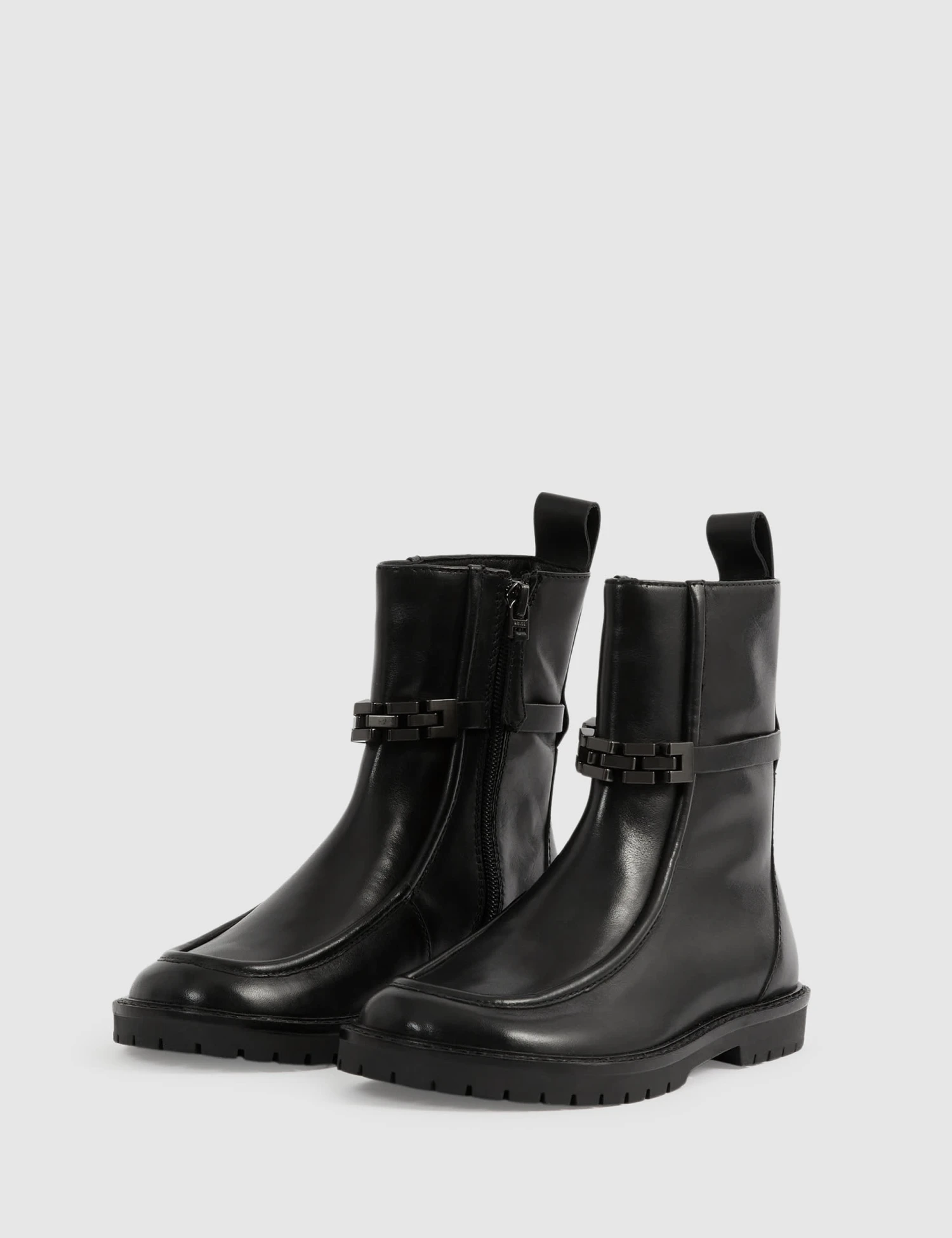 These ankle boots from Reiss are ideal for smart occasions. They’re crafted from premium smooth leather, with a discreet zip fastening and a pull tab on the back so kids can get ready with ease. A metal chain link and leather band around the ankle adds modern detailing.