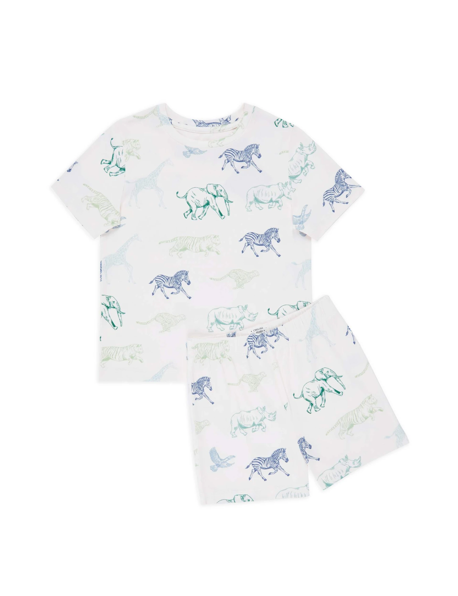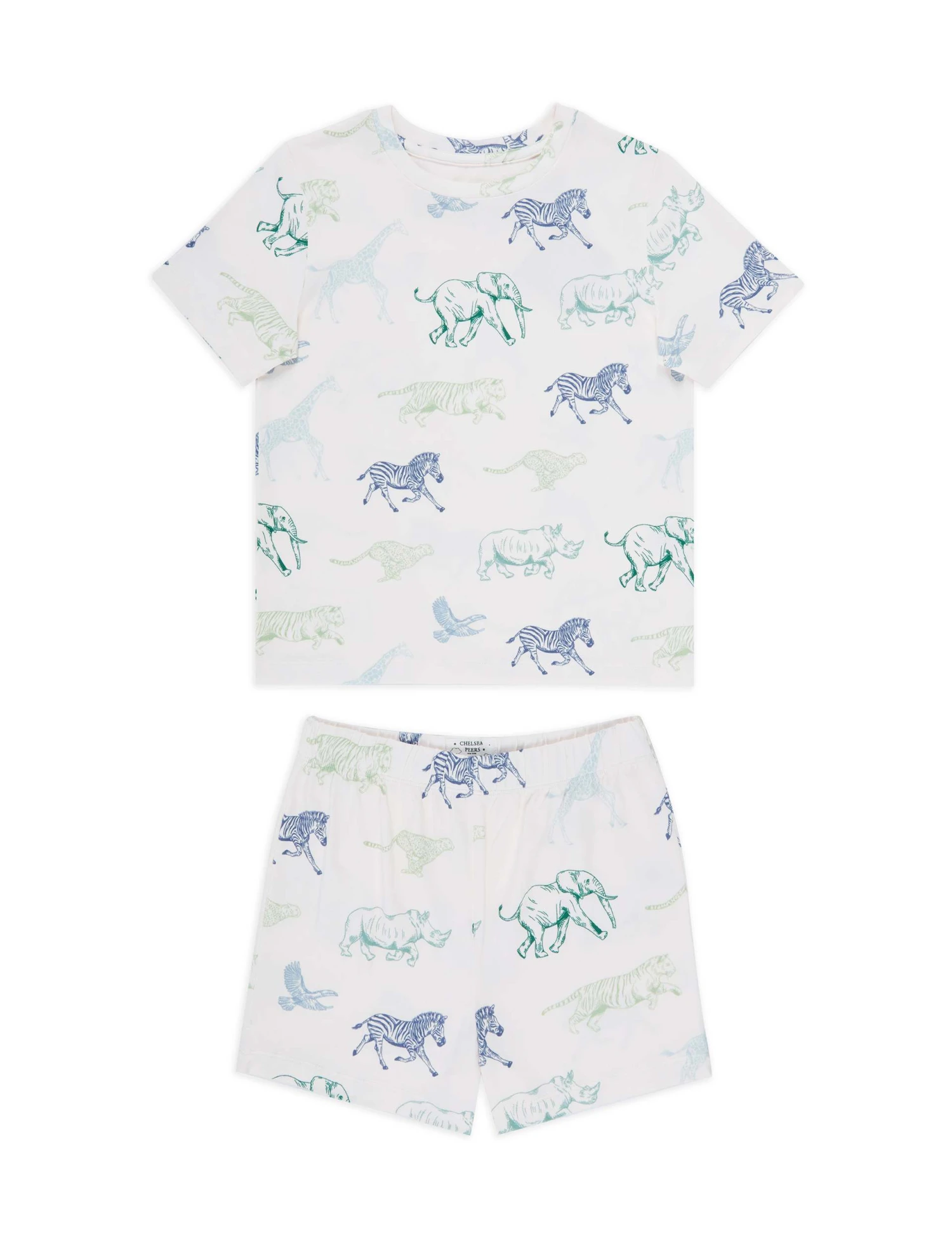 These shortie pyjamas from Chelsea Peers are ideal for a comfy night’s snooze in warmer weather. This regular-fit set includes a crew-neck t-shirt and shorts with a flexible elasticated waistband. The brand’s hand-drawn print shows safari animals in a range of tonal hues.
