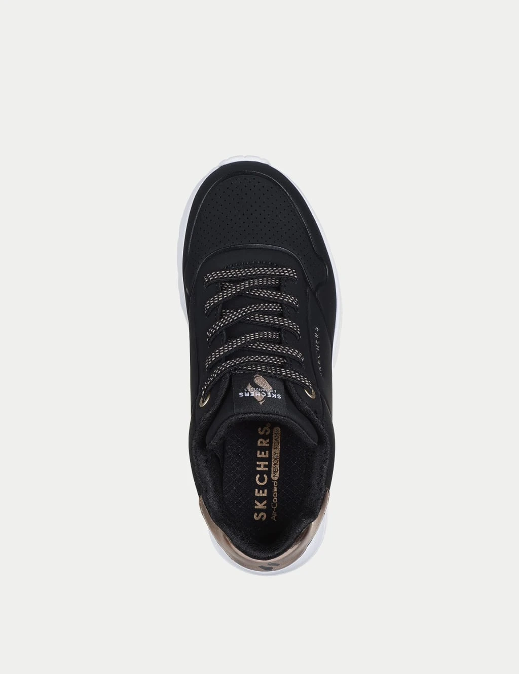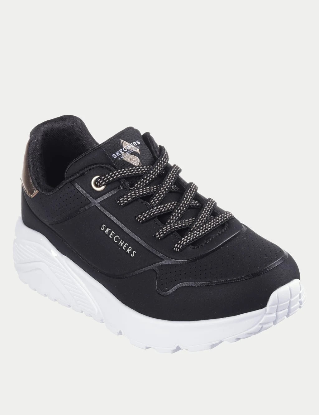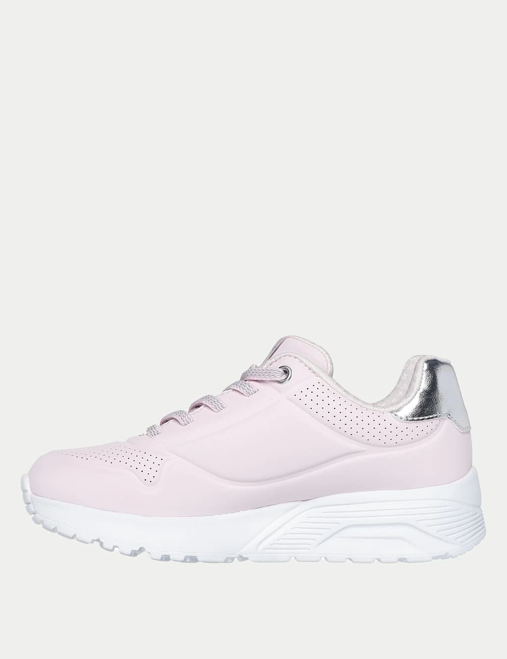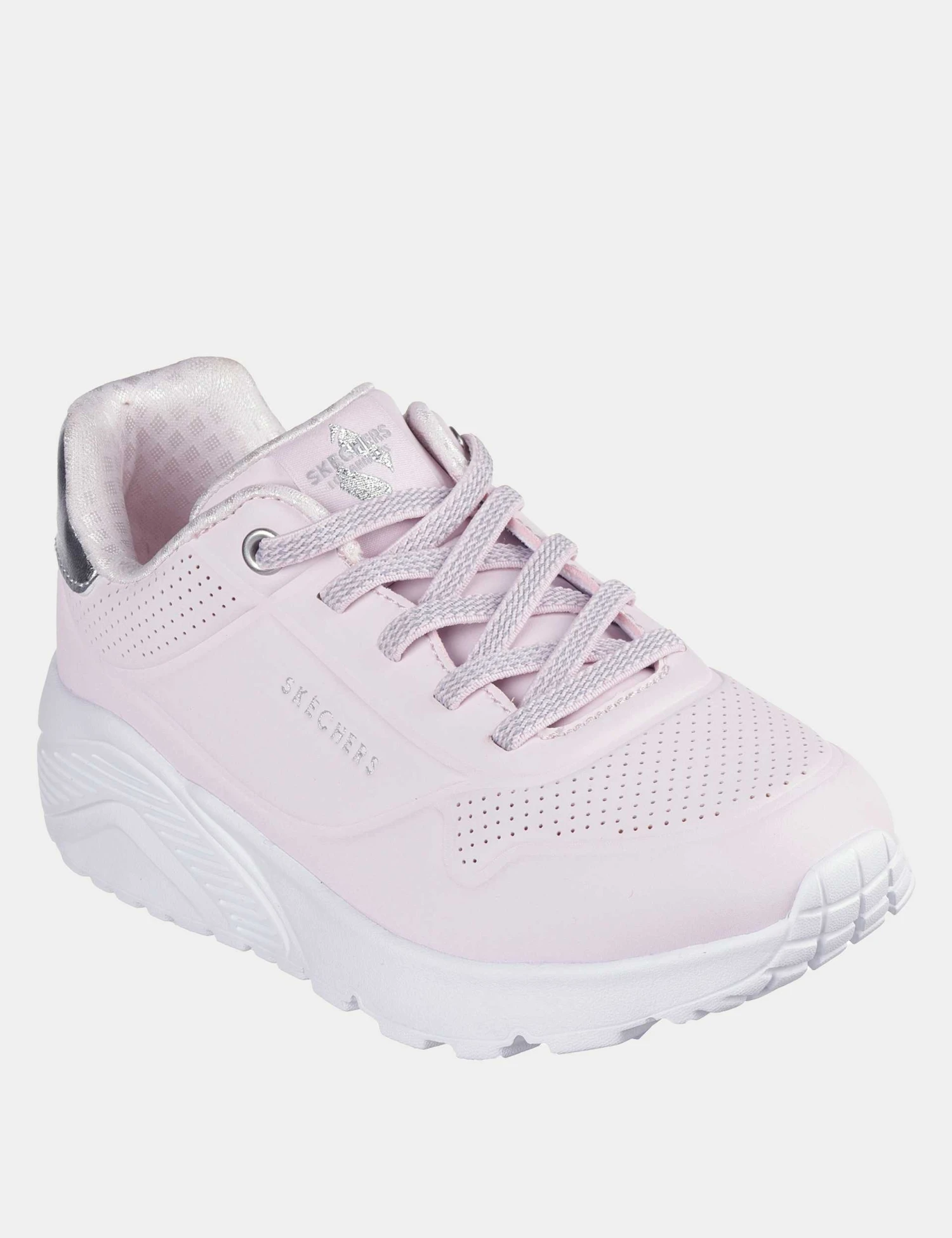 These lace-up Skechers trainers are a sporty choice for their casual wardrobe. They’re made with a breathable upper featuring ventilation detail to keep their feet cool. An Air-Cooled Memory Foam insole provides cushioned comfort, while a chunky contrast sole adds a modern finish. Metallic touches add a little luxury to the sporty style.