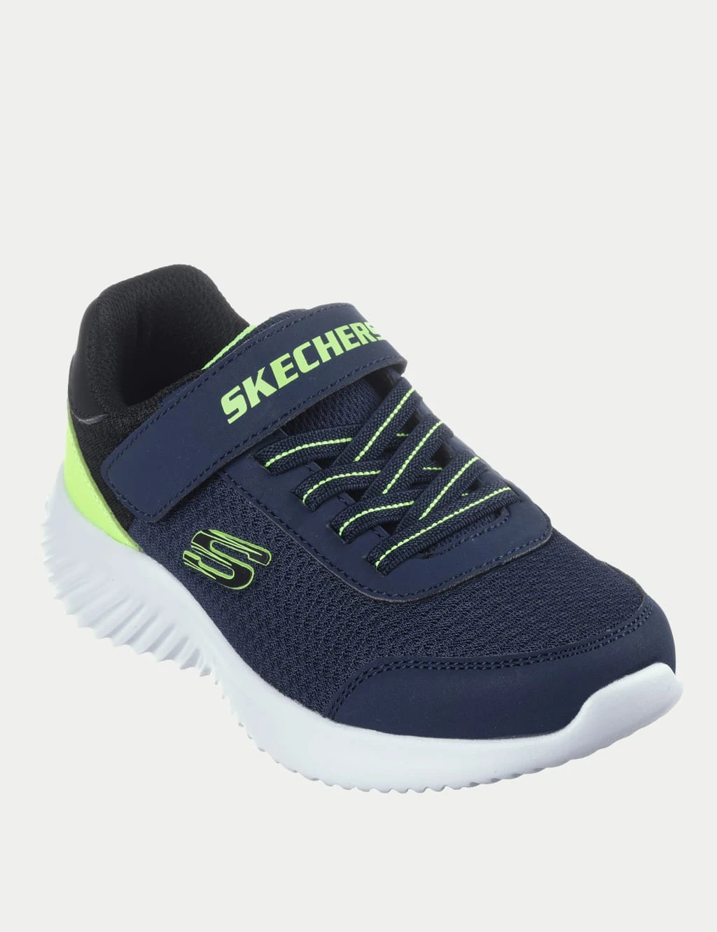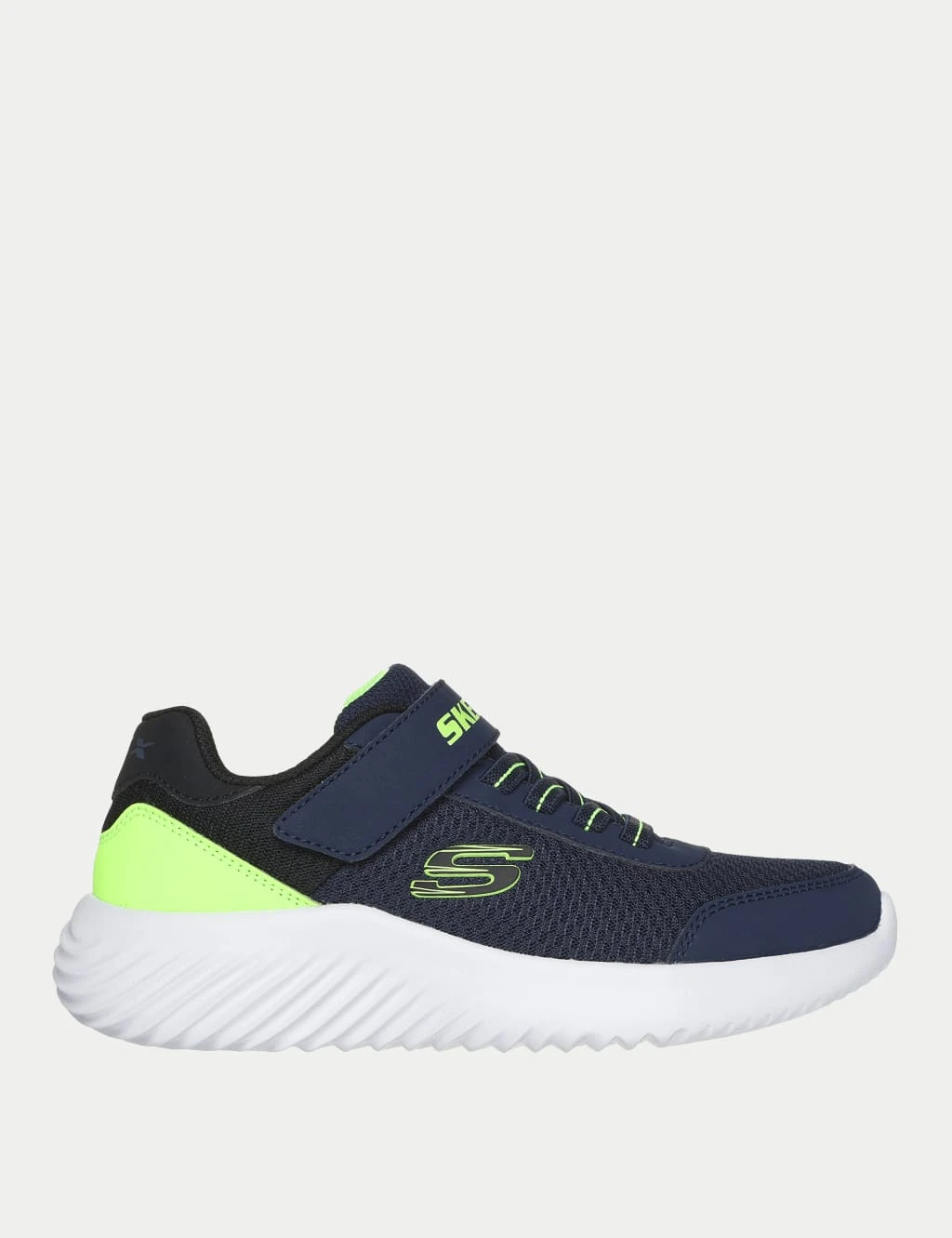These innovative Skechers trainers are a practical and comfortable choice for outdoor play. The pair have a riptape fastening plus stretchy laces for easy on and off. A lightweight chunky sole offers support and grip with its special design. The neon back panel and flashes of neon all over add a cool finishing touch while enhancing his visibility.