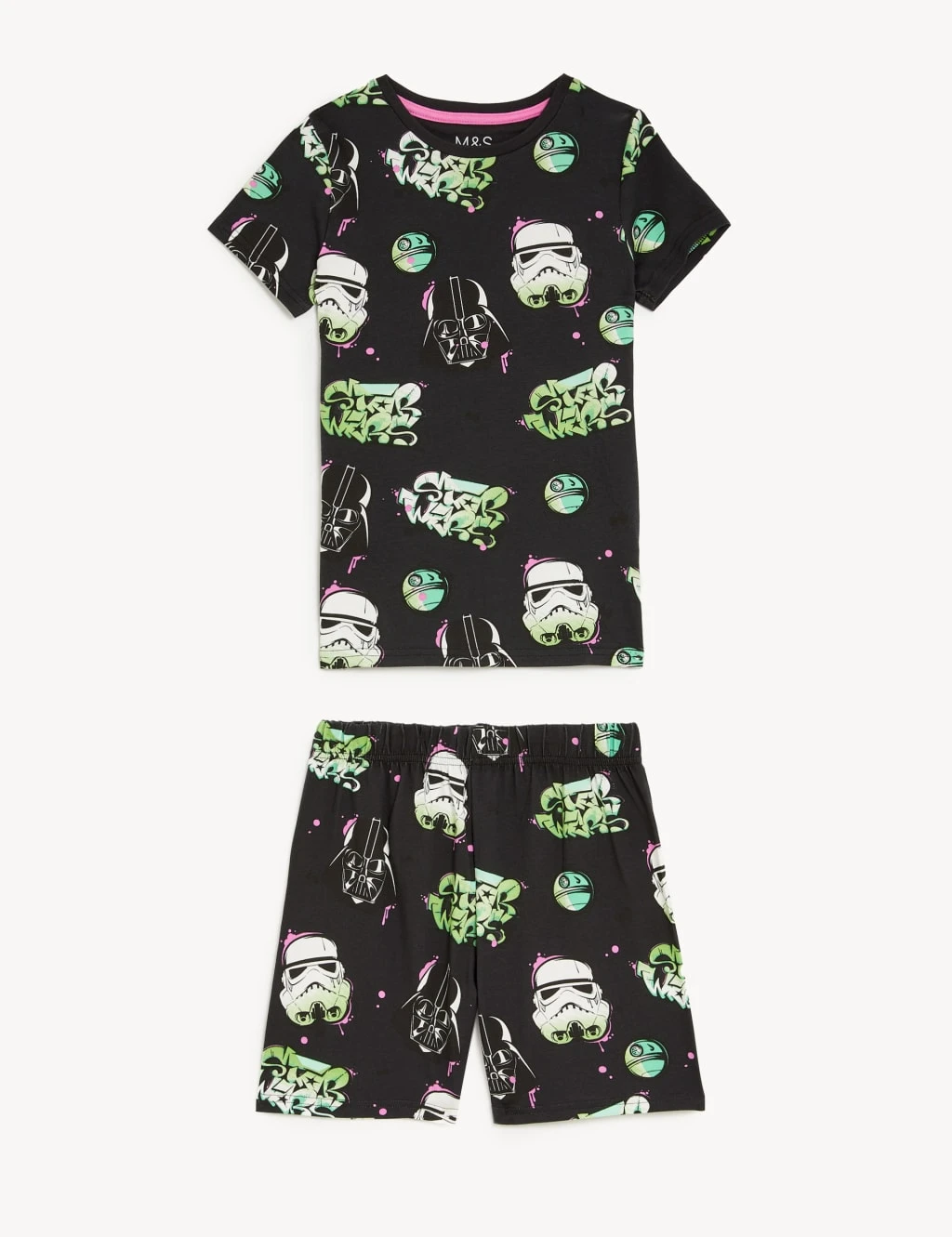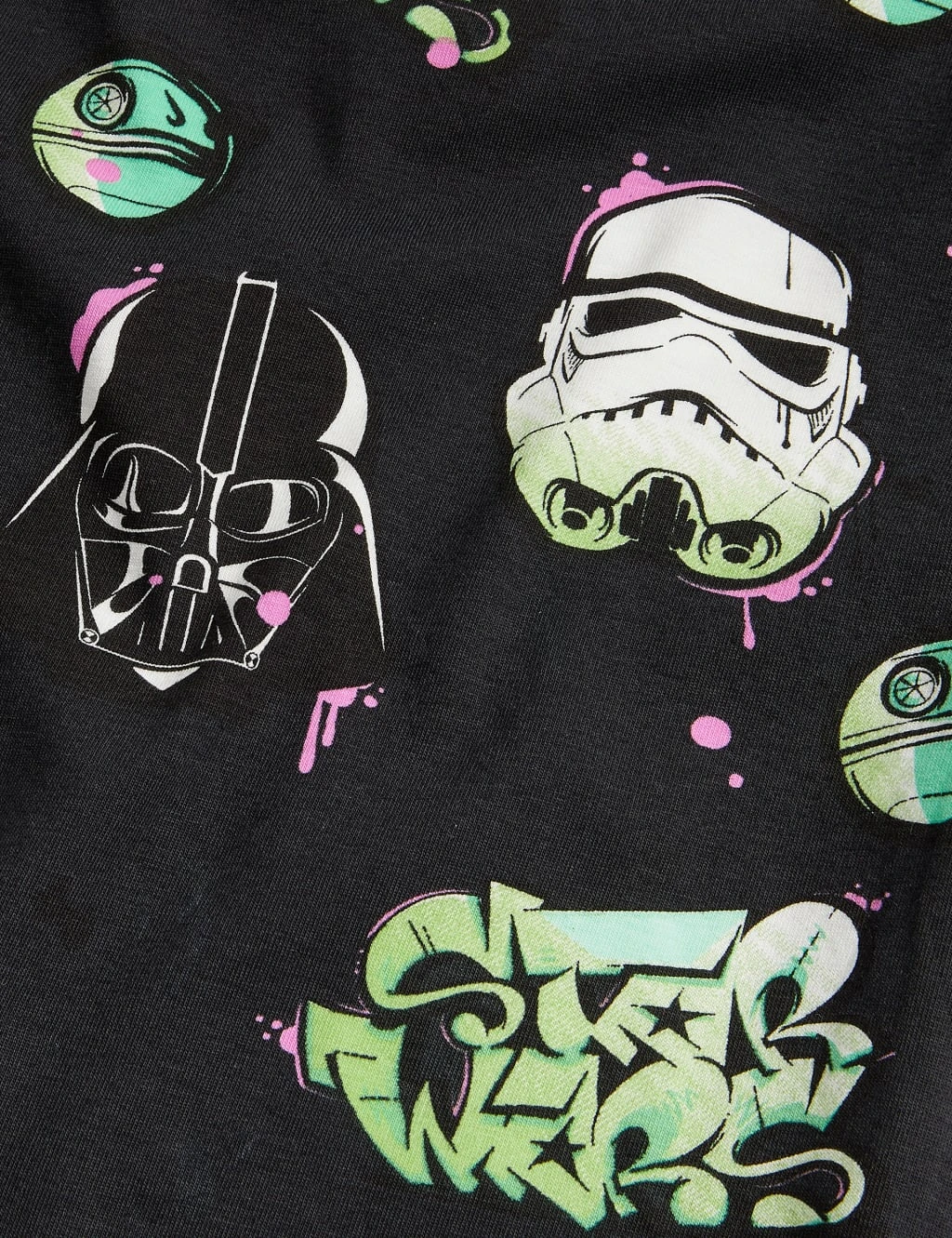 They’ll be dreaming of their next adventure with these cotton-rich pyjamas, featuring a dramatic Star Wars™ print. This set is cut to a skinny fit, with added stretch to keep them in shape. The breezy shorts are made with a comfy elasticated waist.