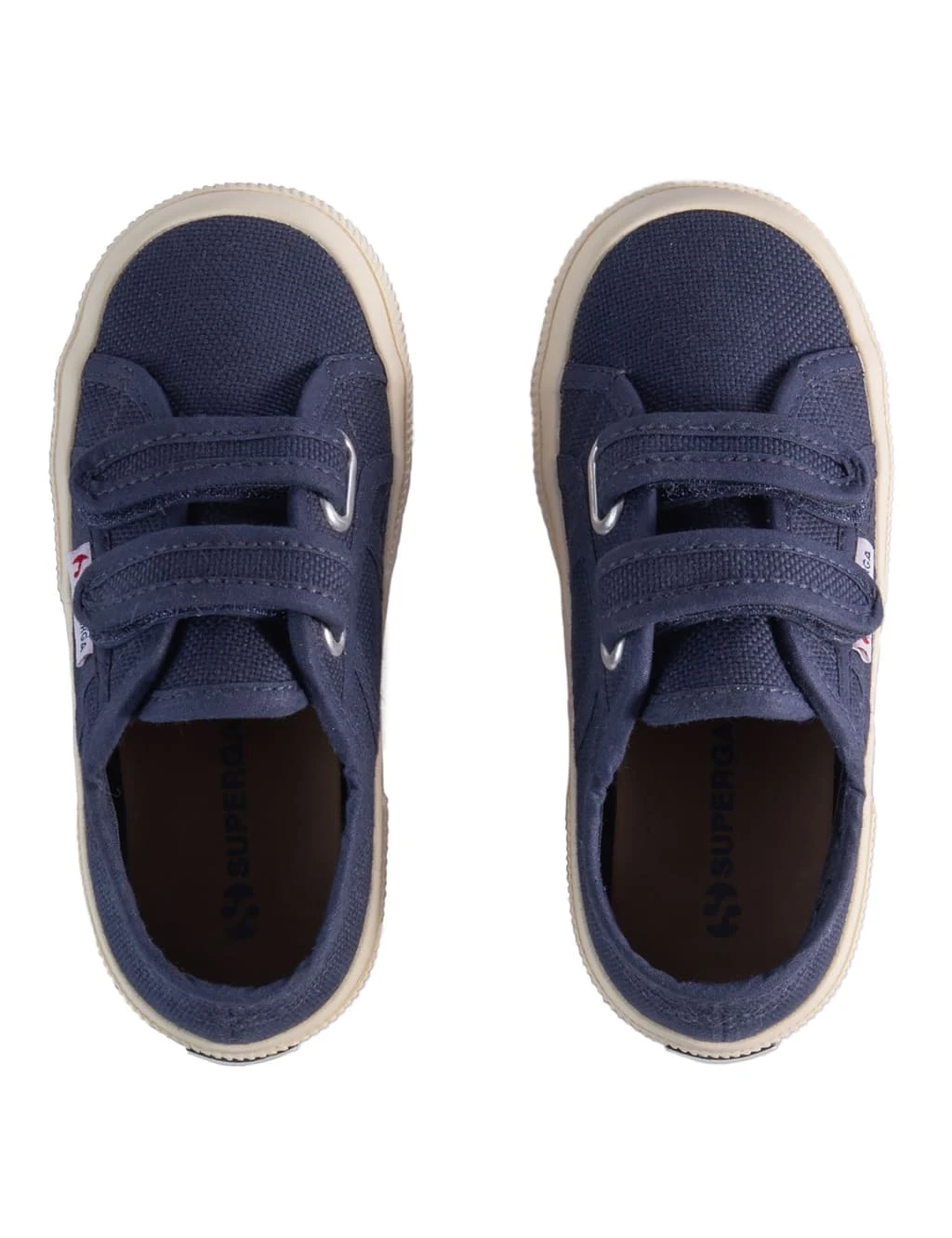 Kids will look super cool in these iconic trainers from Superga. They’re crafted with a cotton canvas upper and vulcanised rubber soles for durability and a sporty look. Riptape fastening makes for easy on and off. This pair is finished with stitch detailing and a branded tab on the side.