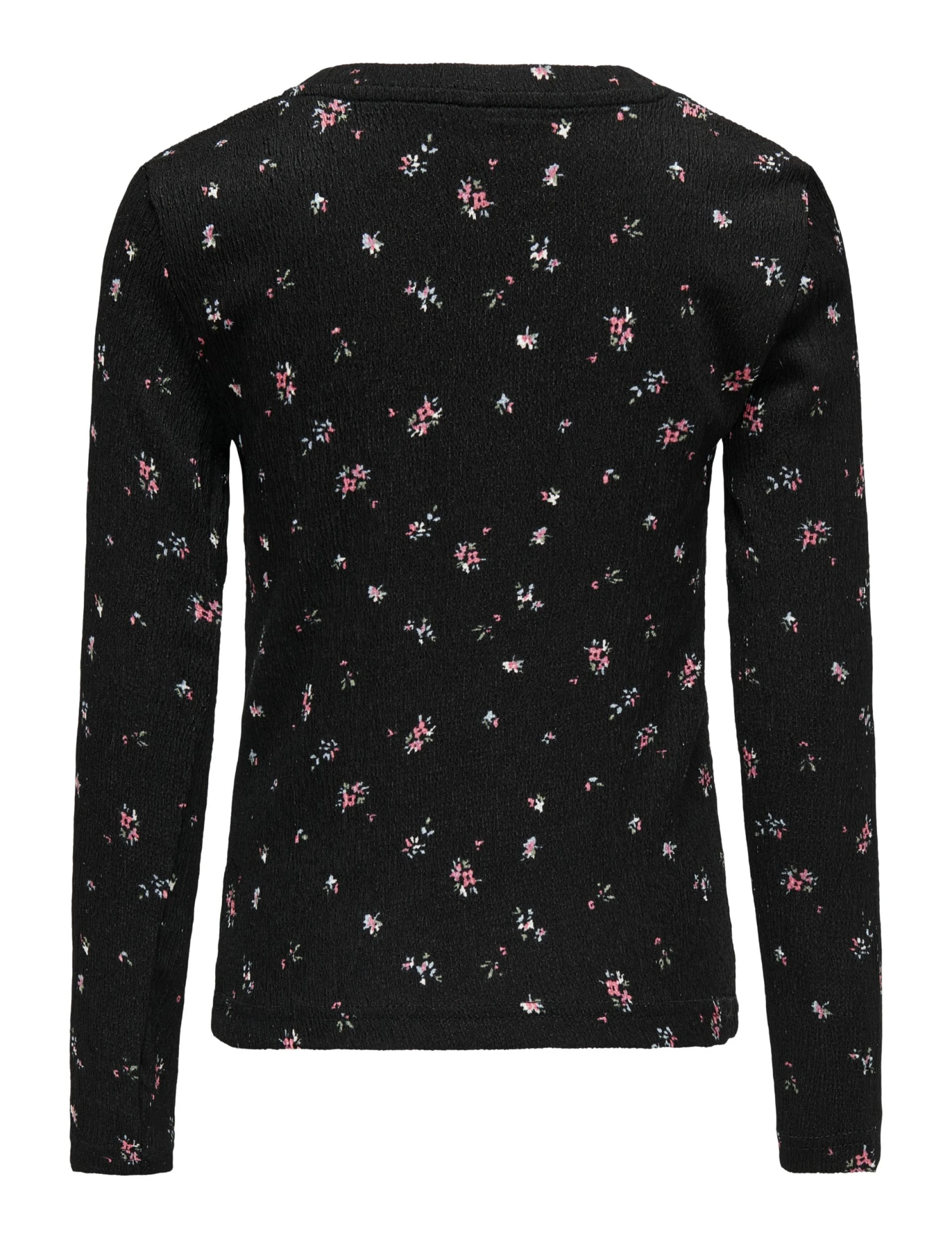 This long-sleeved top from Kids Only is crafted from soft textured fabric for a cosy feel. It’s made in a regular fit, with a neat round neckline. An all-over print of floral motifs lends a pretty finish.