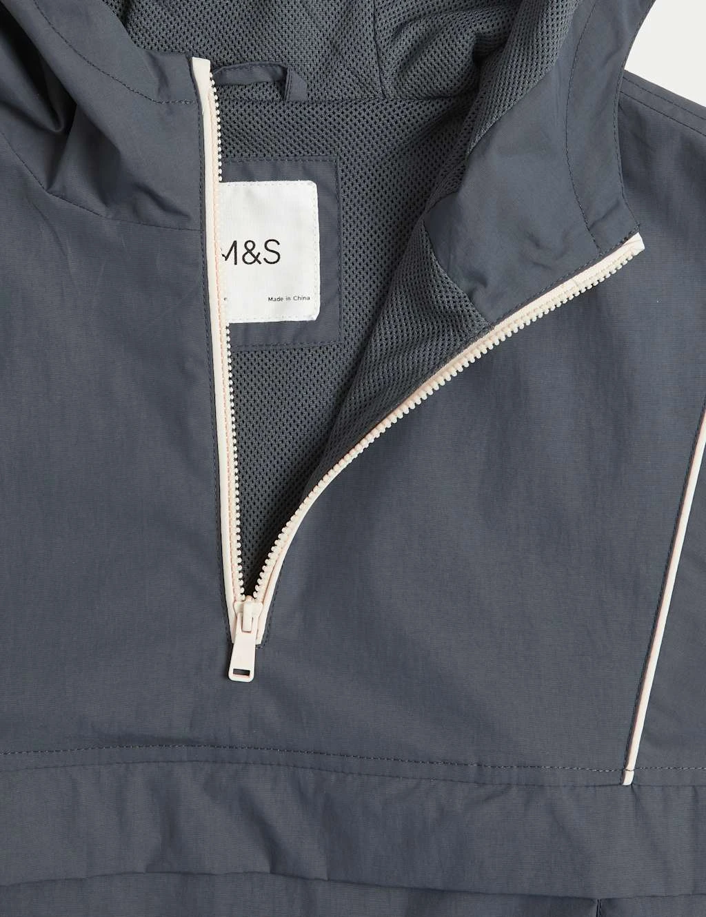 This utility windbreaker is fully lined with breathable mesh for a lightweight feel on outdoor adventures. It’s made in a regular fit, with a half-zip fastening and a hooded neckline. A large pocket at the front is ideal for storing essentials, while contrast piping over the shoulders adds a sporty finish.
