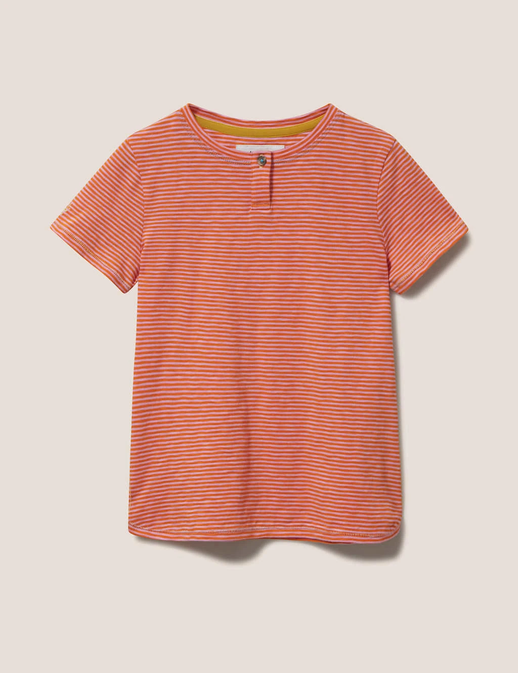 A soft cotton modal blend makes this White Stuff t-shirt perfect for all-day adventures. It’s made in a regular fit, with a round neckline and a single-button placket. This short-sleeved tee is printed with narrow stripes for a cheerful effect and finished with contrast stitching.