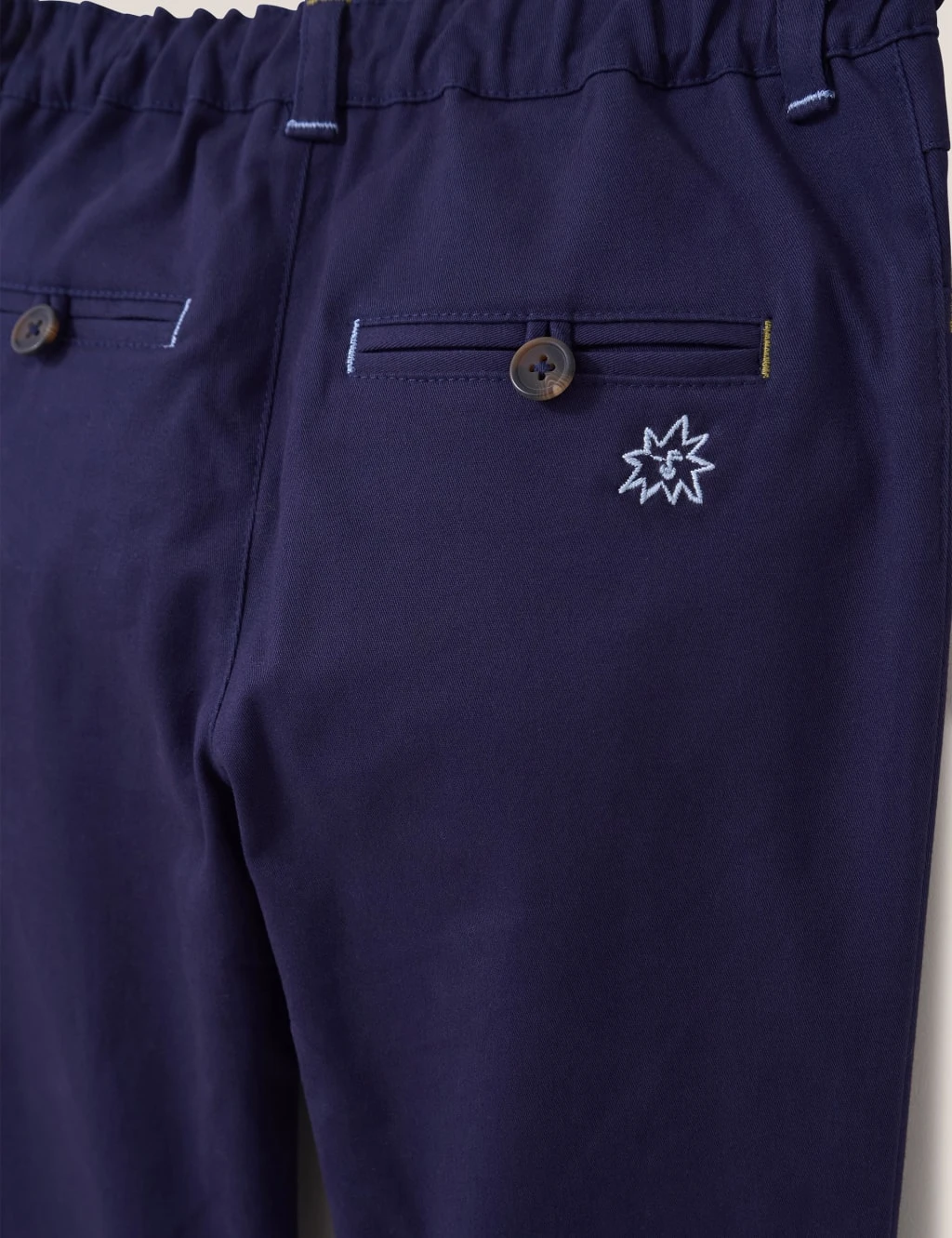 These versatile cotton-rich chinos from White Stuff will quickly become a favourite pair in their wardrobe. They’re cut in a comfy regular fit with an easy zip fastening. The back and side pockets add classic styling details, while logo embroidery gives them a signature touch.